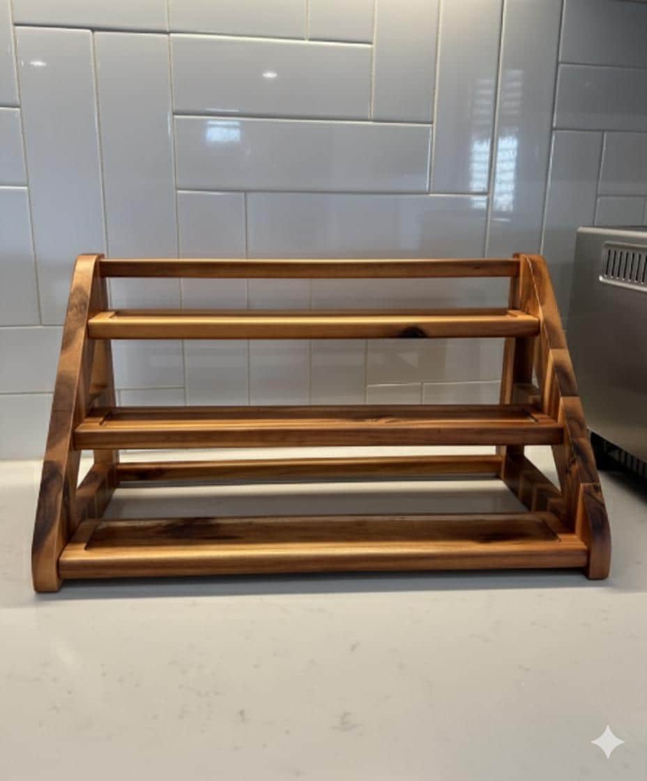 Elevate your kitchen organization with our Plywood Spice Tiered Rack for Counter, a beautifully craf...