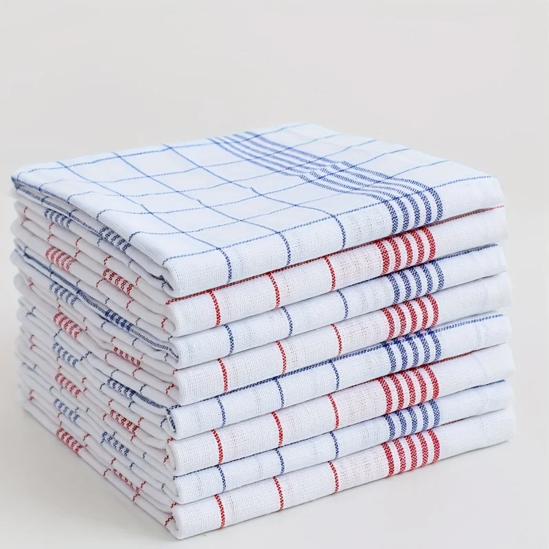 6/12Pcs, 45Cm*60Cm, Two-Color Kitchen Tea Towels, Pure Cotton Striped Plaid Kitchen Towels, Blue/Red...