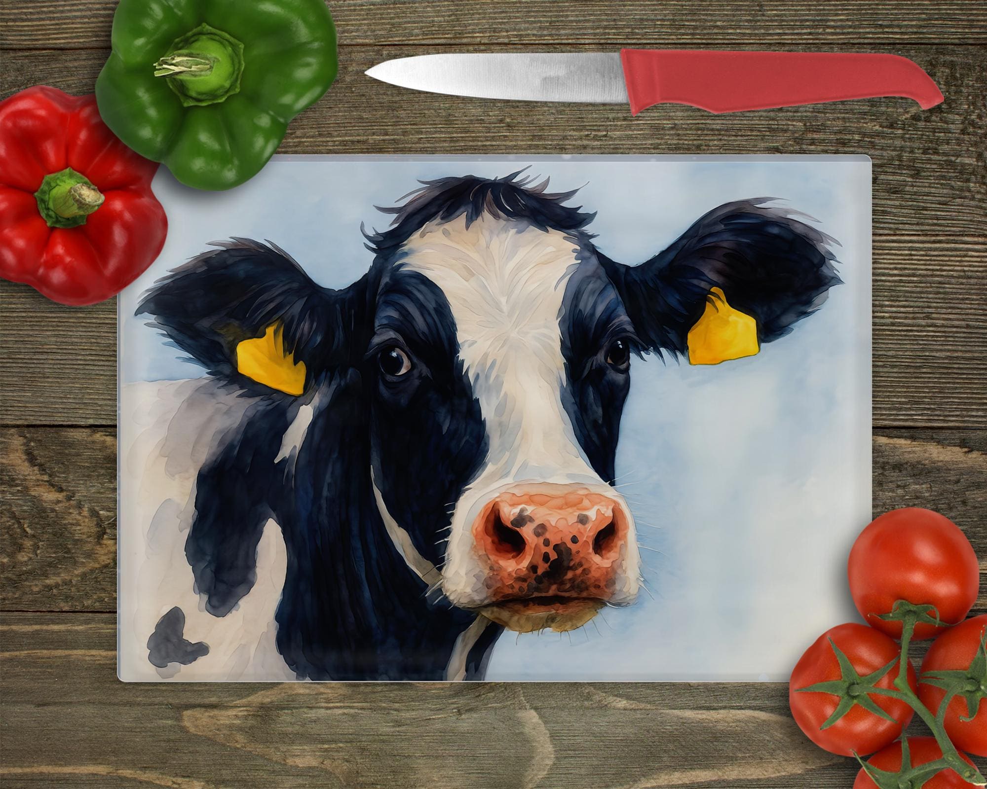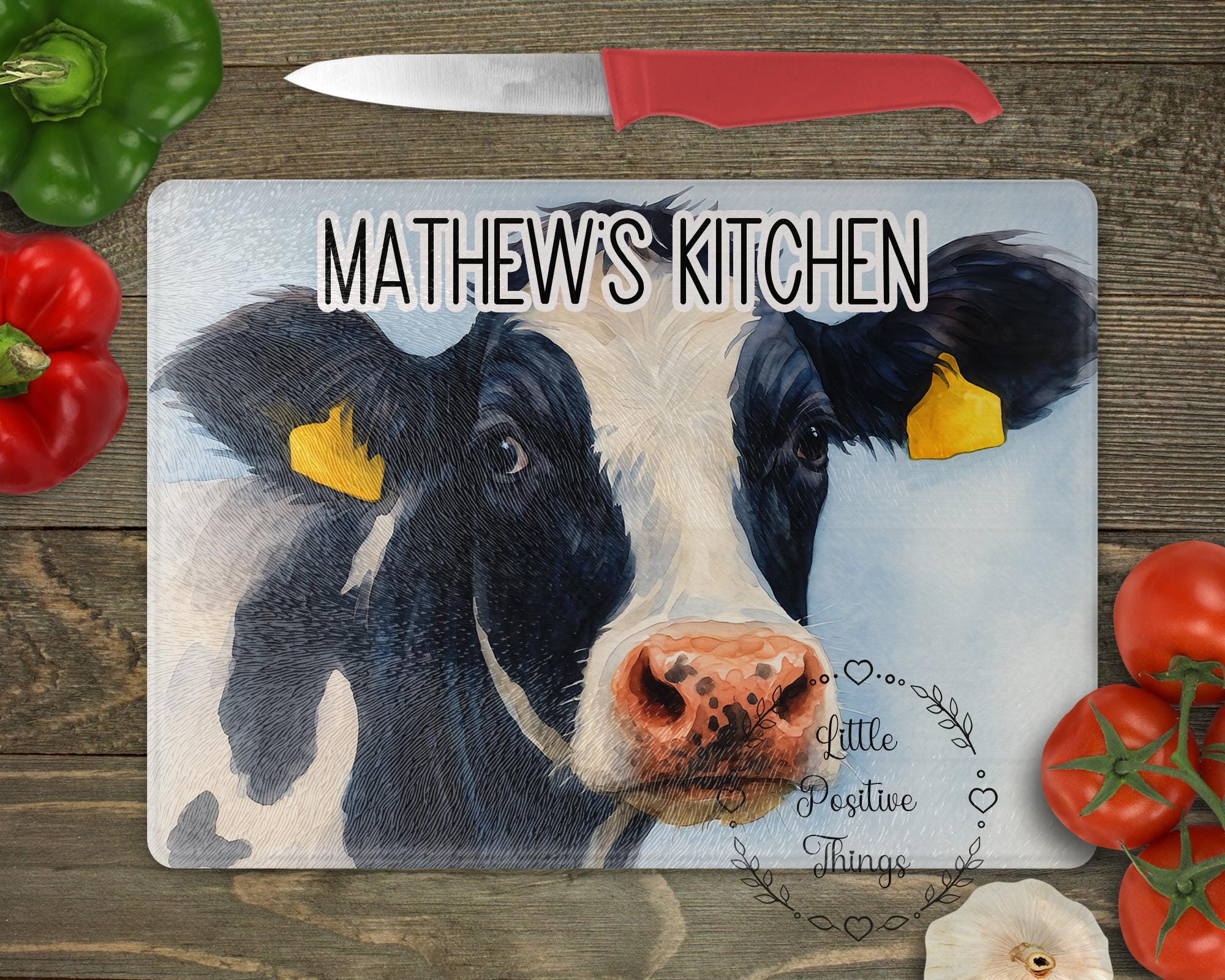 "Absolutely stunning watercoloured graphic chopping board Features a pretty cow and sky backgro...