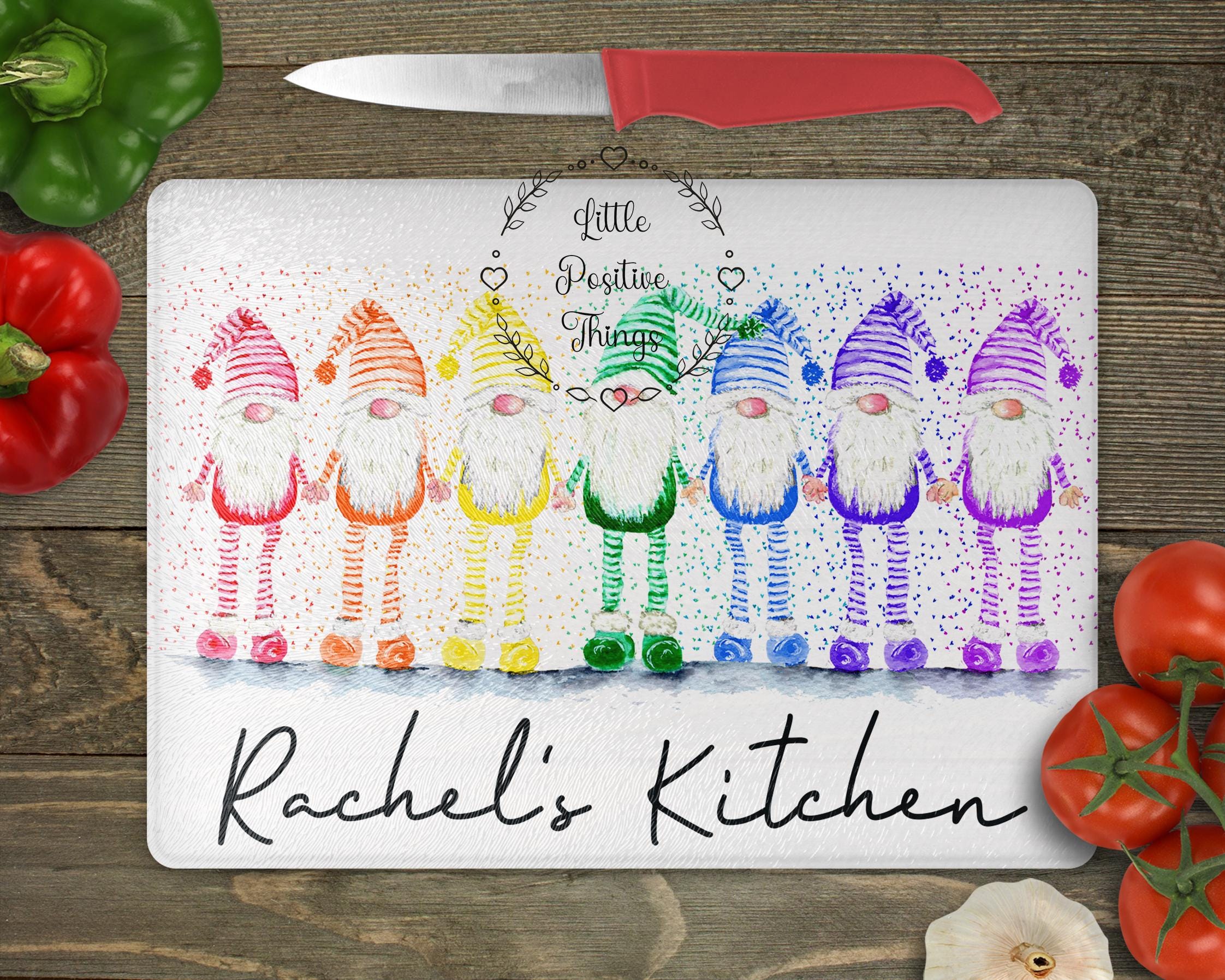 "Absolutely stunning watercoloured graphic chopping board Features a pretty Gonks and heart bac...