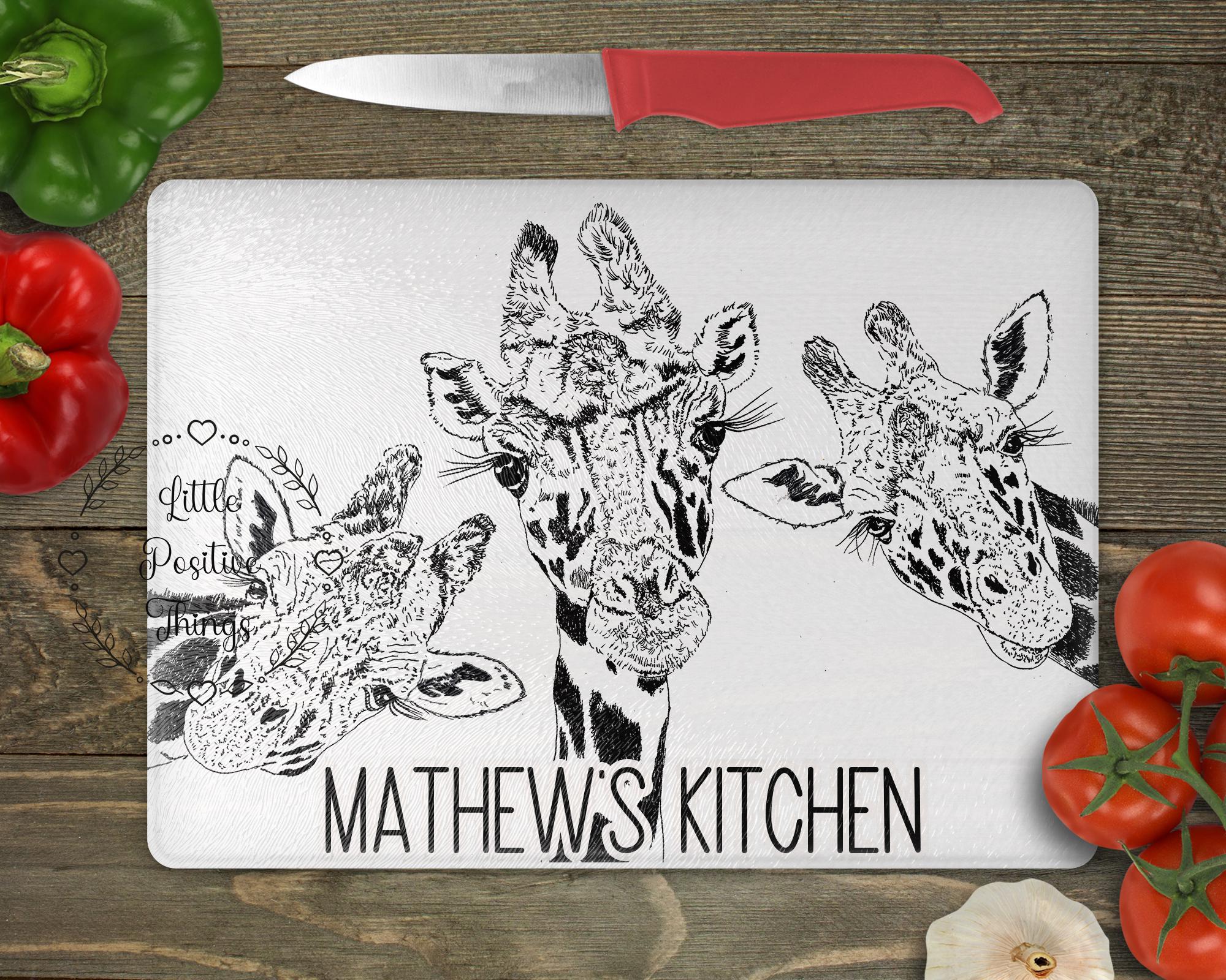 "Beautiful Watercolour Giraffe Chopping Board Add a touch of charm to your kitchen with this st...