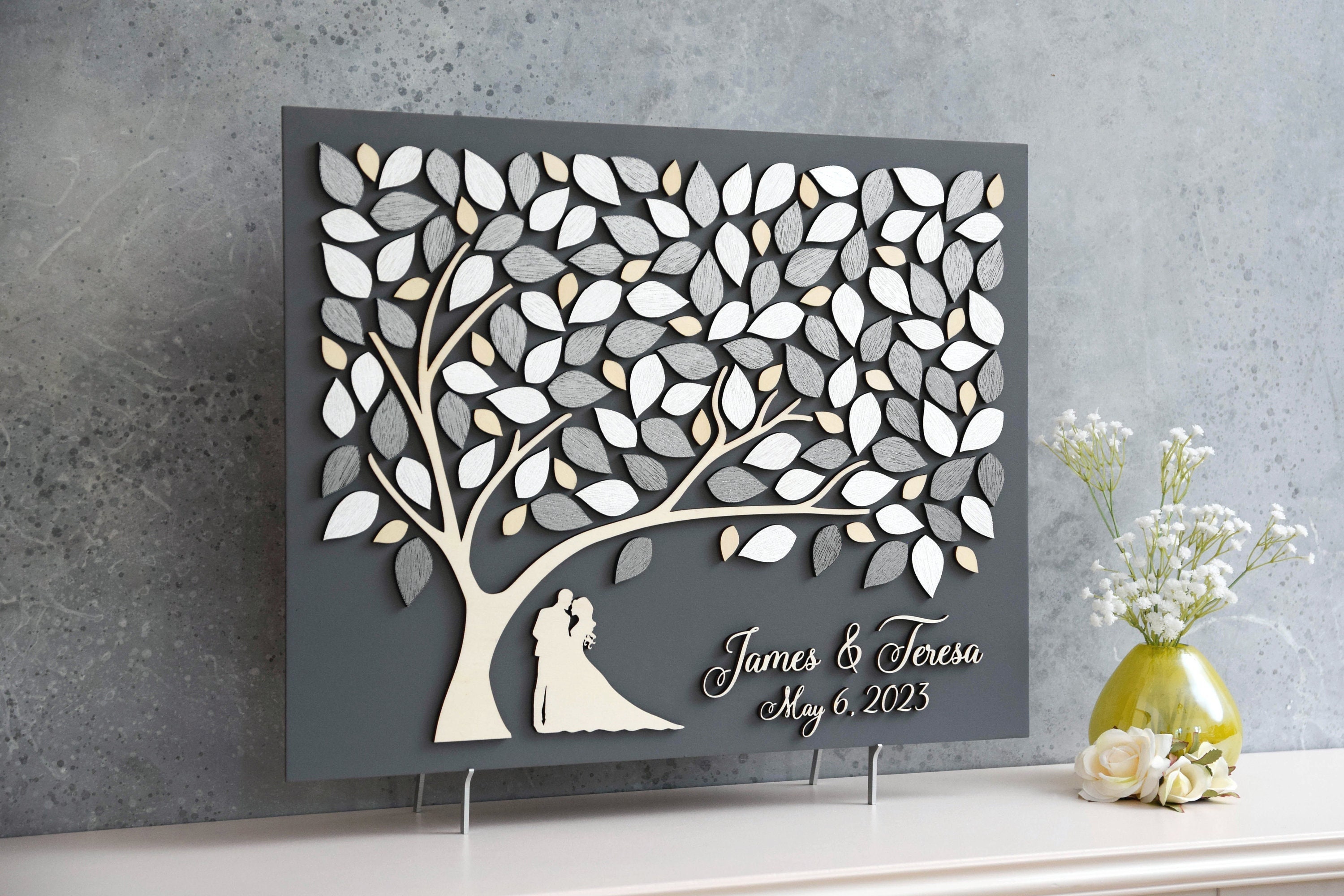 "3D Silver Wedding Guest Book Alternative Tree, Custom Wedding Guest Book, Rustic Wedding, Wedd...