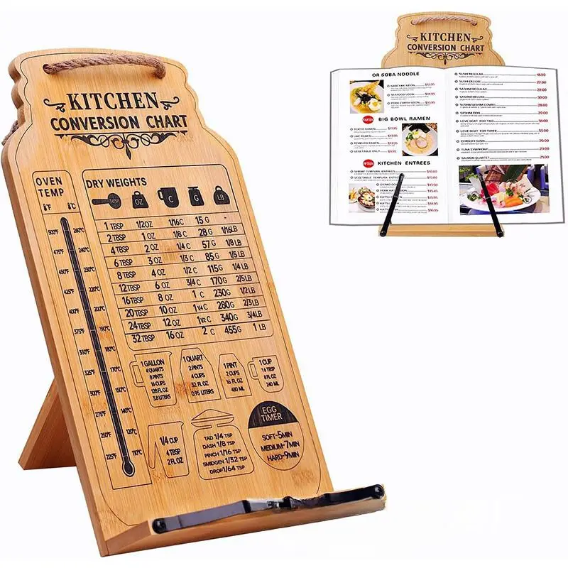 Customized Wooden Cookbook Stand for Kitchen Counter with Paper Cli...