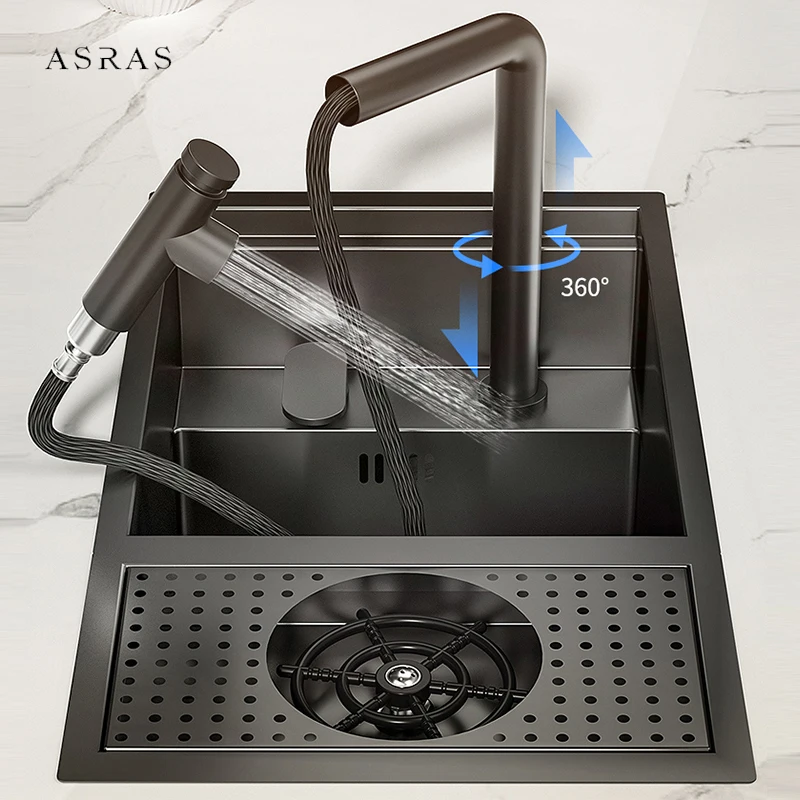 ASRAS Nano Black Small Size Kitchen Sink Cup Washer Hidden Bar Coun...