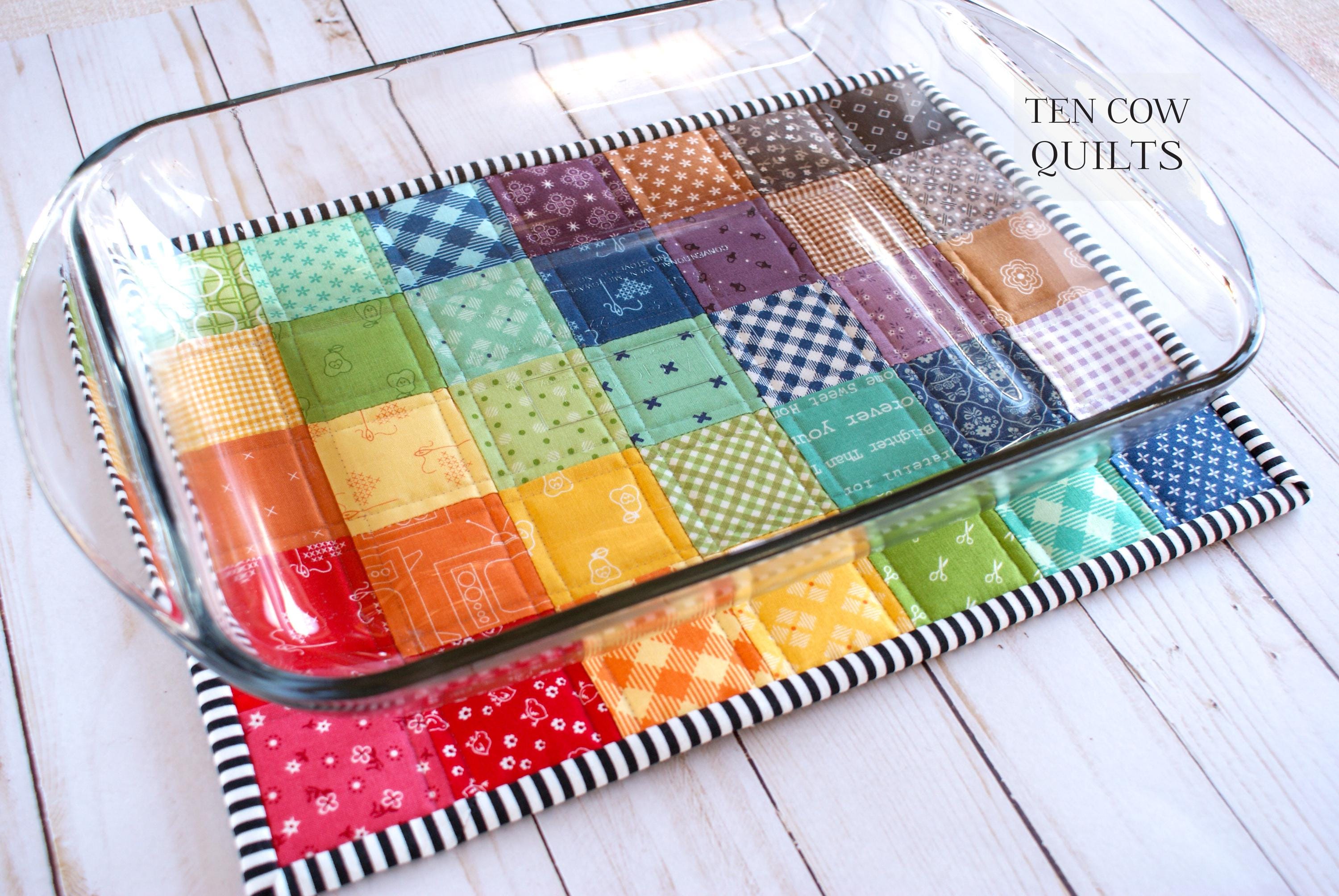 Large Hot Pad Pattern, Patchwork, Quilted Trivet for Casserole Dish...