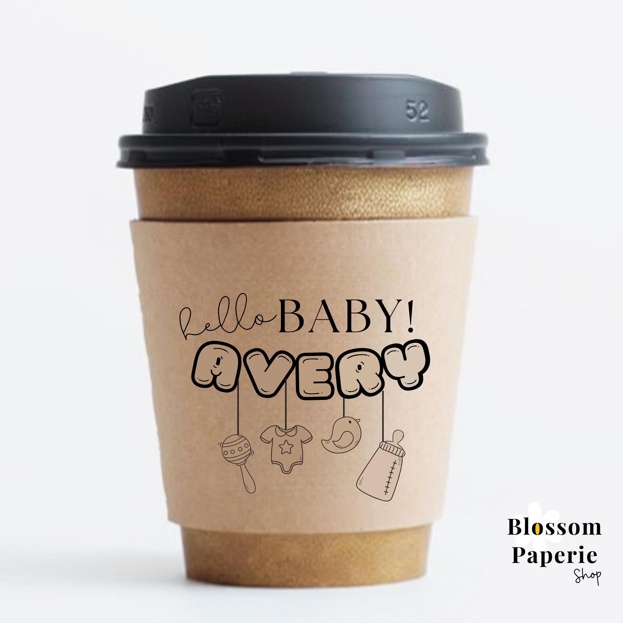 These custom coffee sleeves are perfect for a baby shower. Personalize your stylish drink bar, coffe...