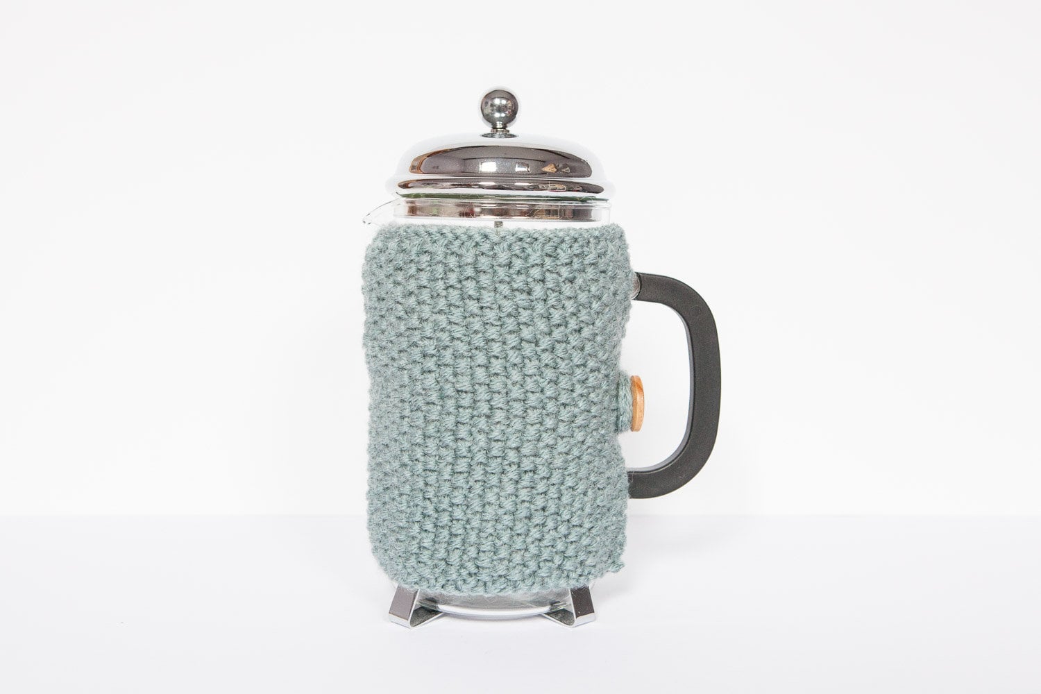 Blue knit coffee cosy - Cafetiere cosy - Coffee jug warmer - French...