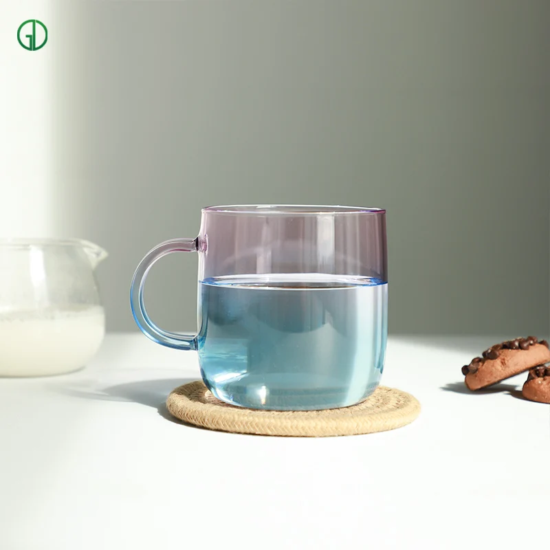 Colored Glass Cups Drink Milk Tea Coffee Glass Cup Transparent Colo...