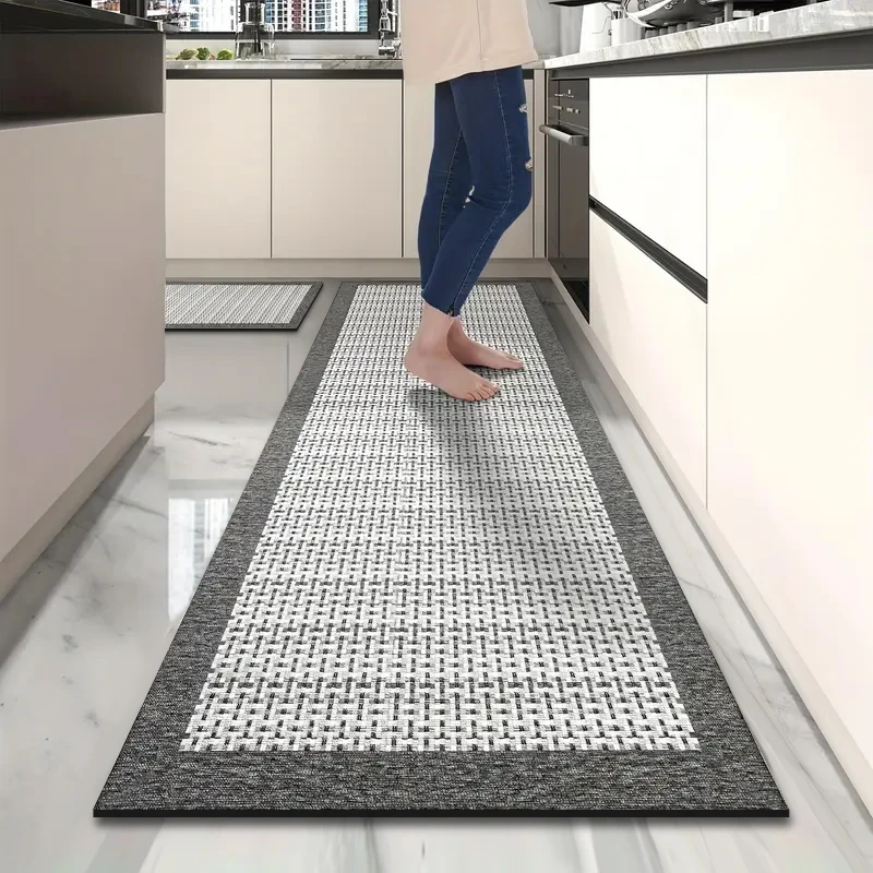 Long imitation woven kitchen floor mats diatom mud printed non-slip...