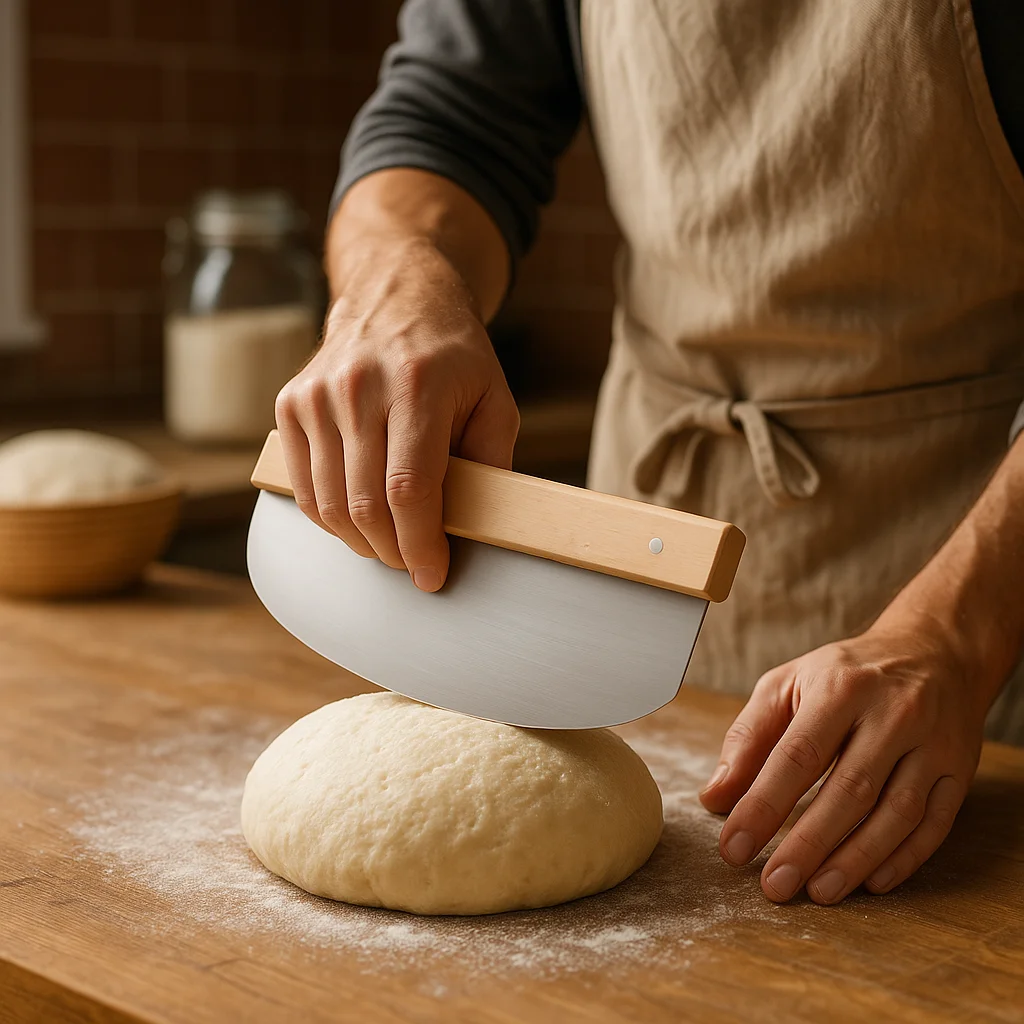 Stainless Steel Pizza Cutter Wood Handle Cake Bread Round Knife Cur...