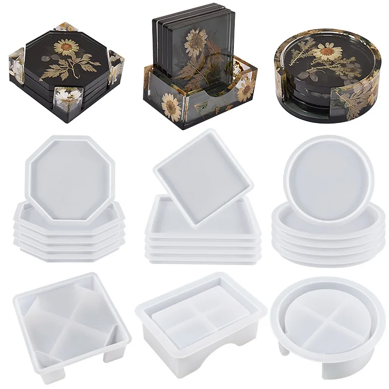 6-piece Cup Pad Set Resin Mold Gypsum Cup Pad Storage Box Combinati...