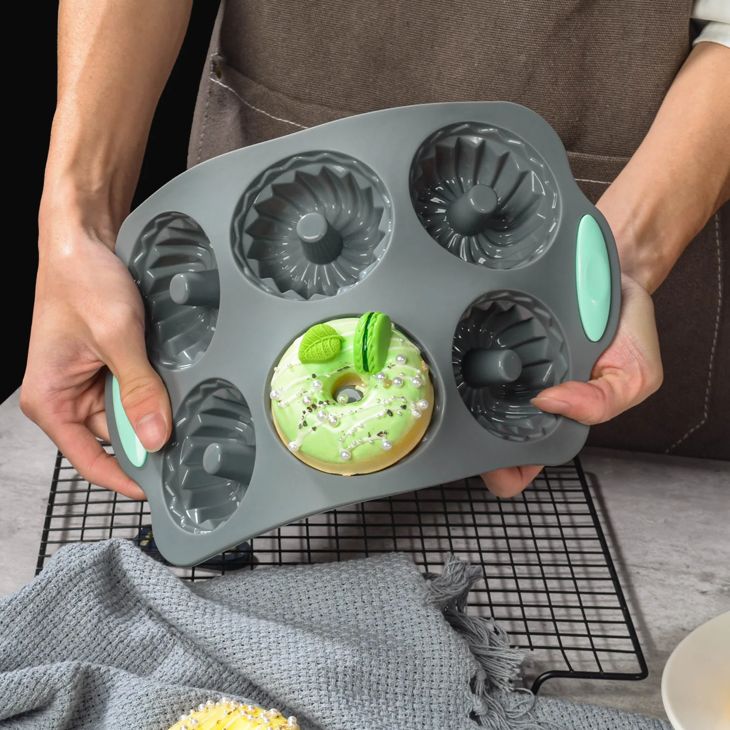 1pc 6-Cavity Silicone Donut Mold, Oven-Safe Silicone Round Donut Mold, Food-Grade Donut Baking Pans ...