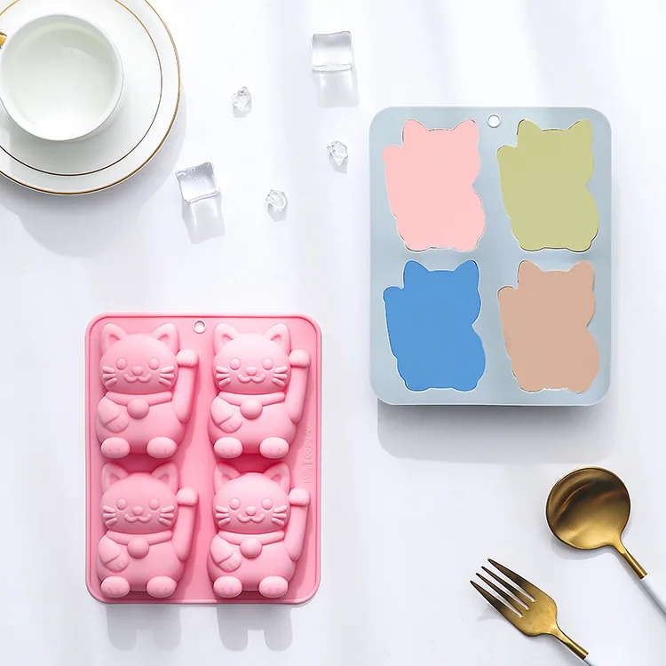4-Grid Lucky Cat Shape Silicone Mold High Cube Dog Cake Tool DIY Ch...