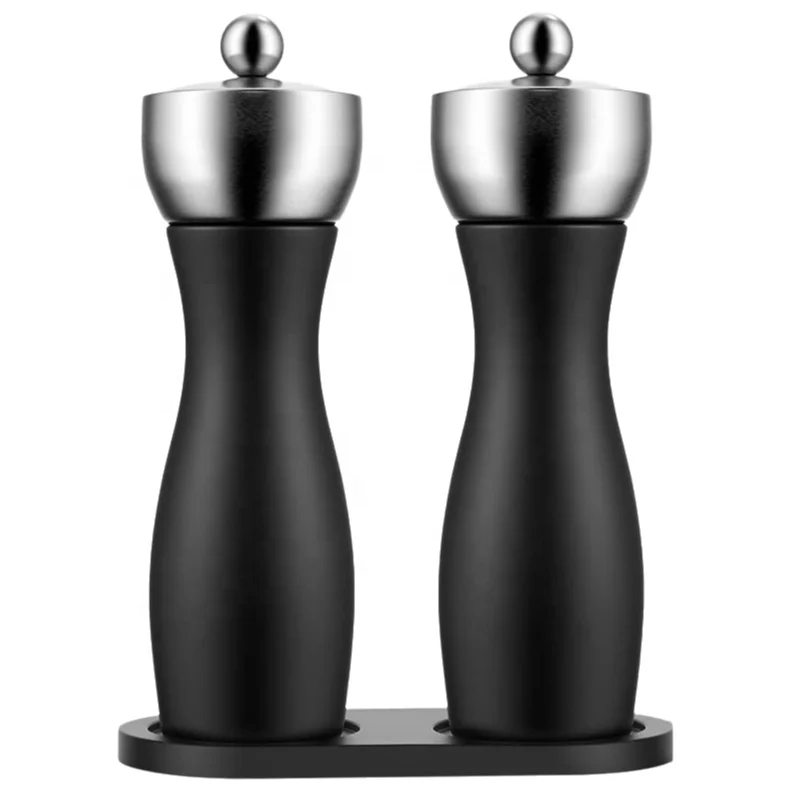 Black Wooden Salt and Pepper Mill Tray Acacia Wood Tray Peper Mill ...