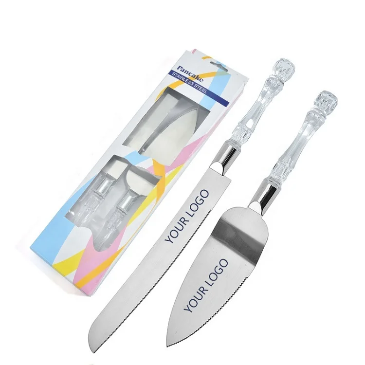 Wedding Faux Crystal Handle Stainless Steel Cake Server Set/Cake Sc...