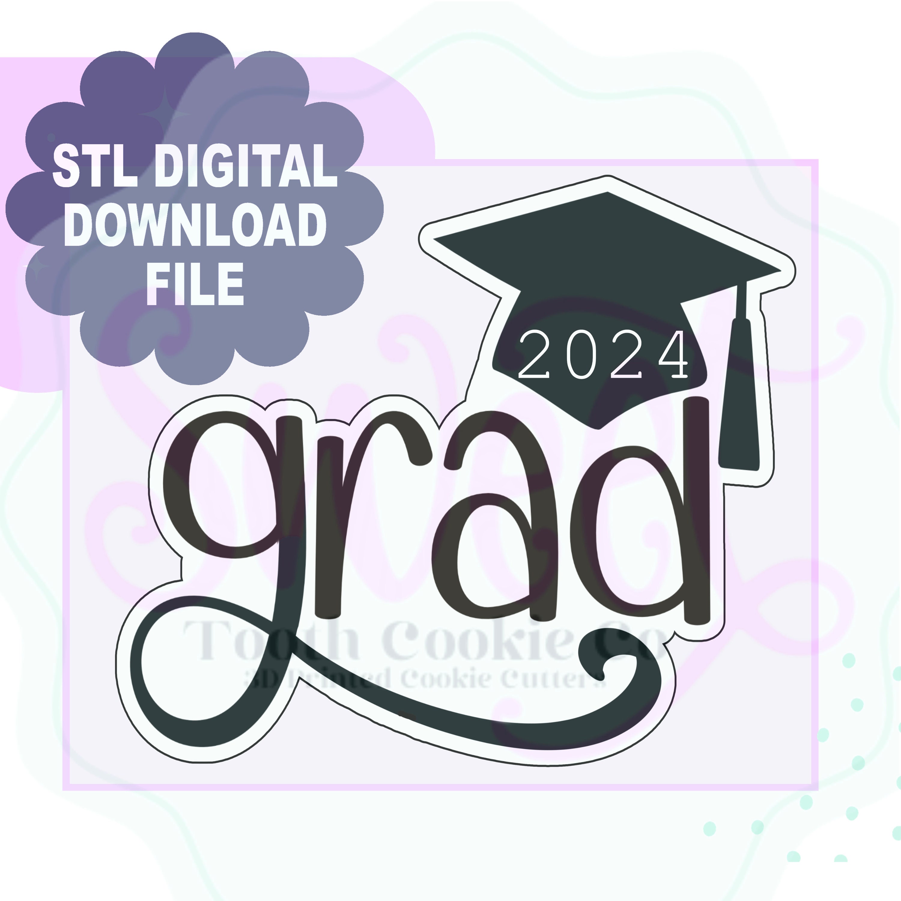 "Grad 2024 STL Digital Download 3D Printed Cookie Cutter Cookie Cutter Dimensions: MINI 1.74\&q...