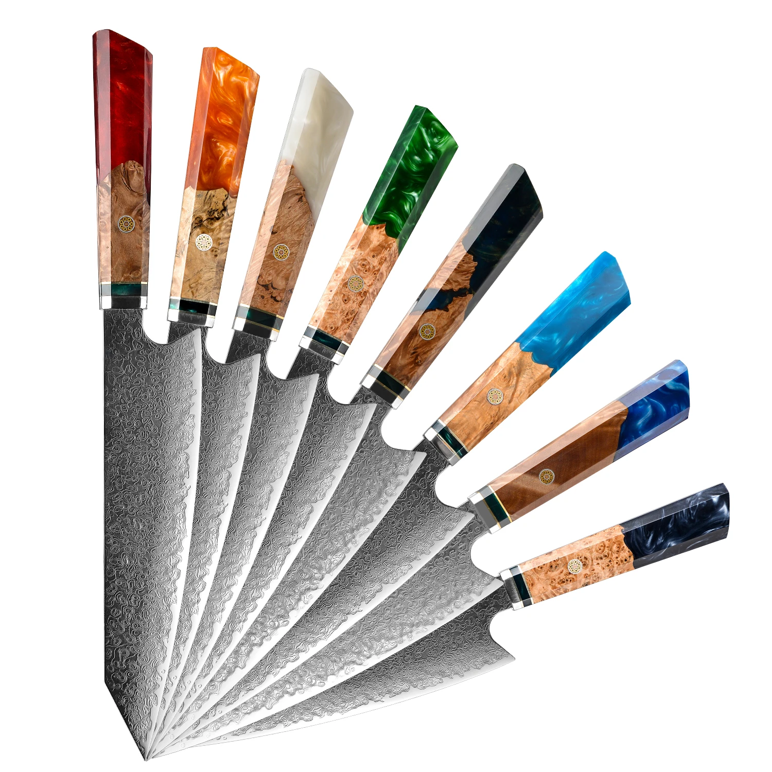 Amber 8pcs Damascus Chef Knife Set Professional Chef Knife Set Japa...