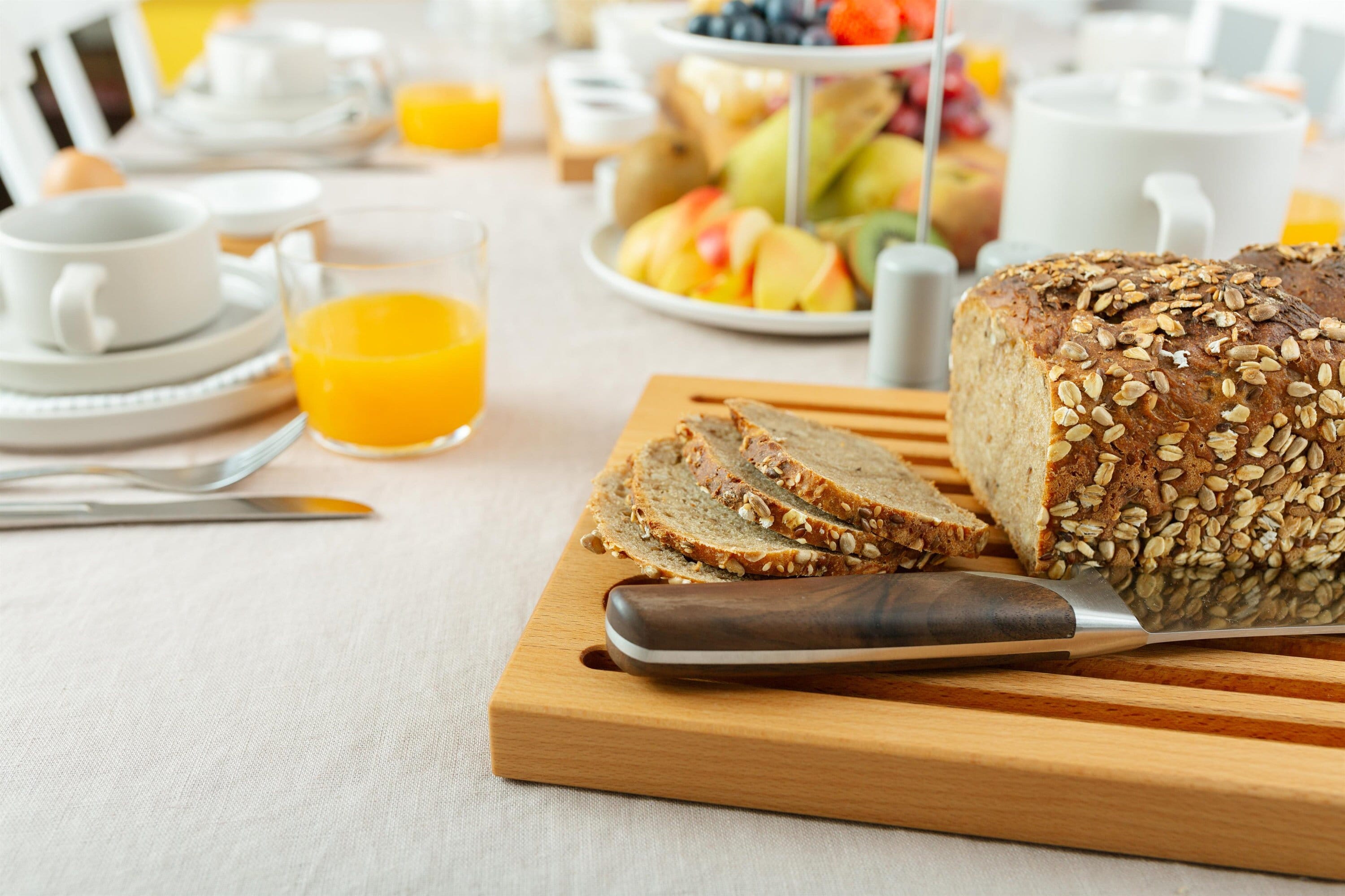 Our high-quality beechwood bread cutting board is an indispensable kitchen accessory for your snack....