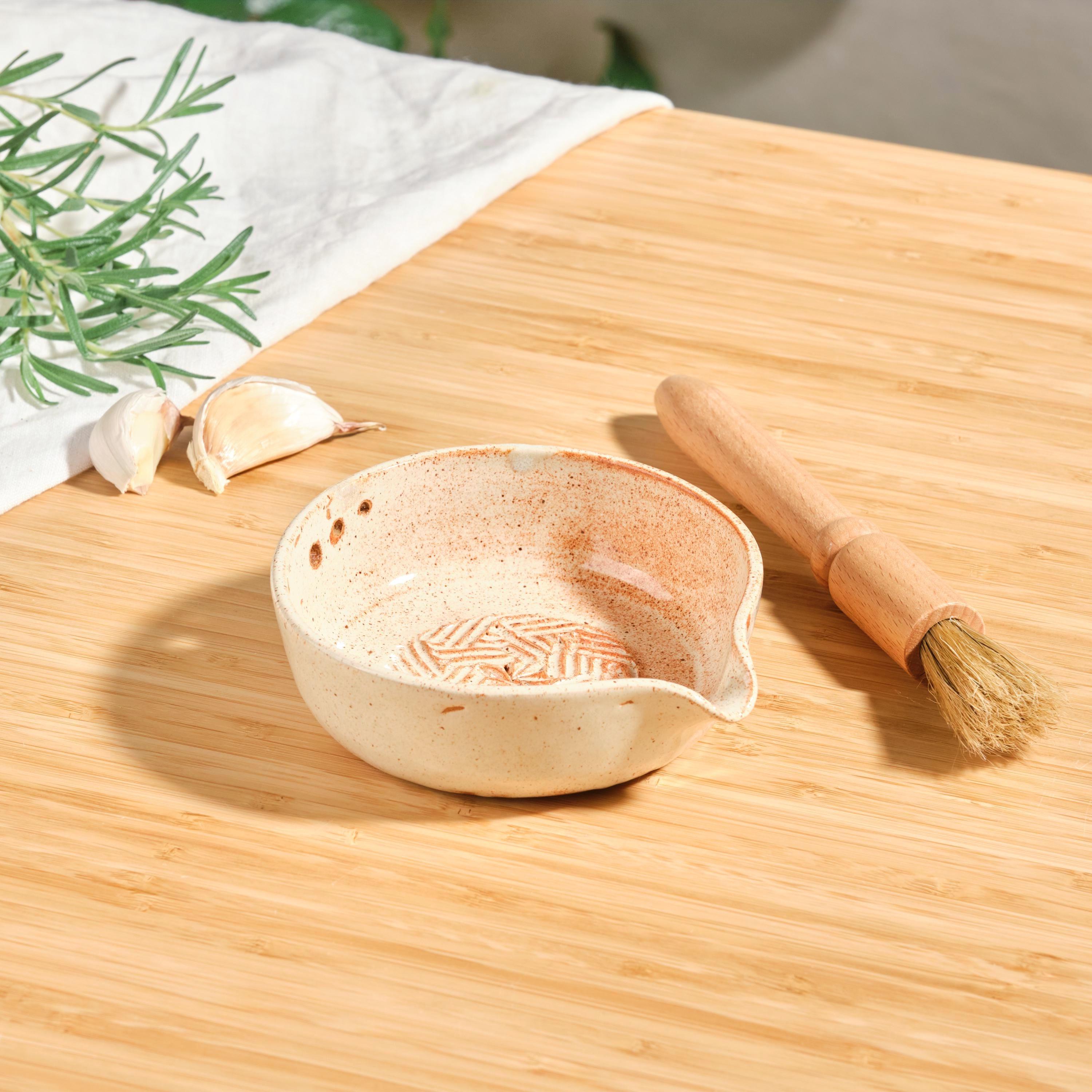 Garlic grater bowl handmade pottery herb stripper for mindful cooki...