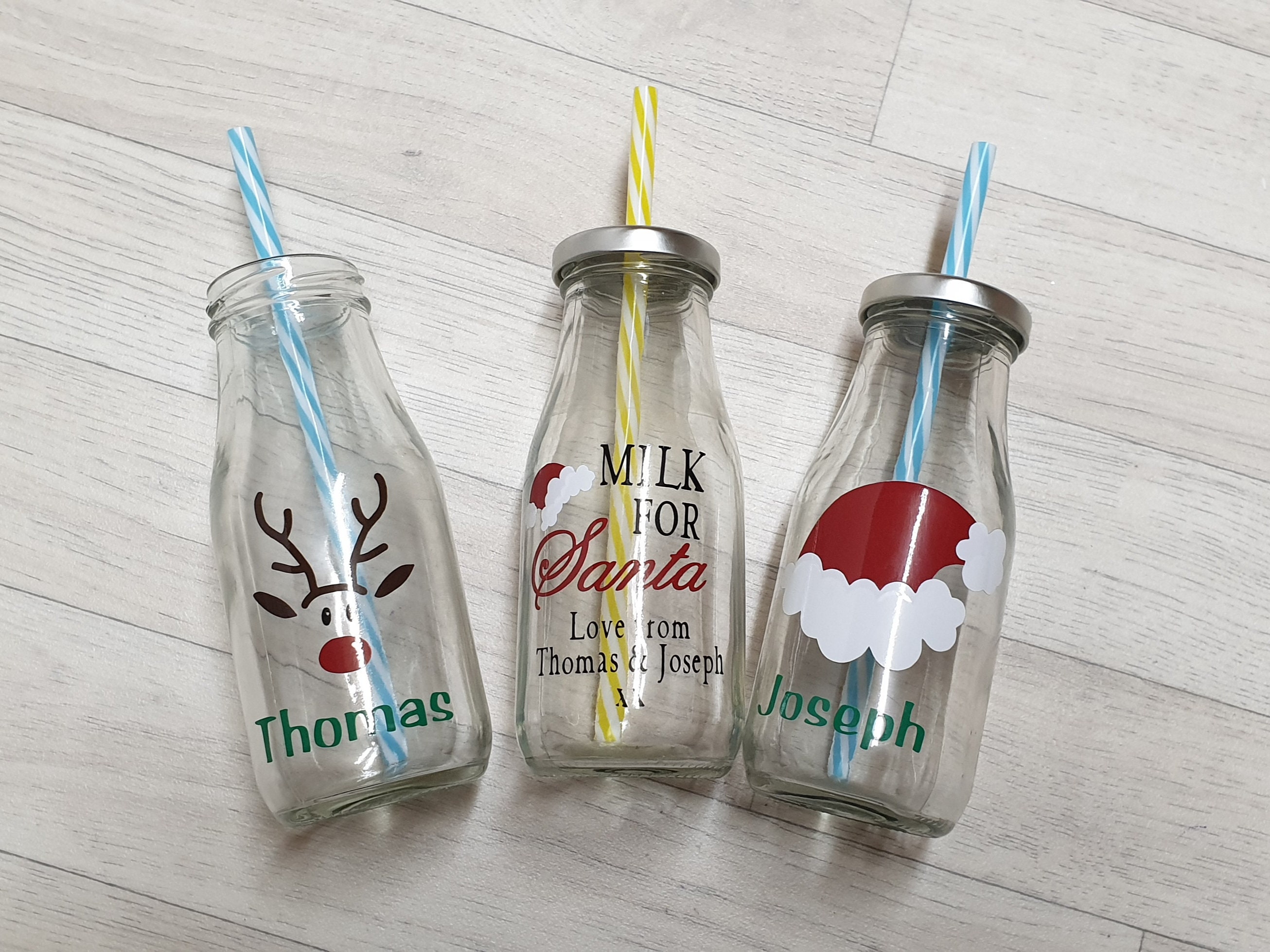 Personalised Christmas milk bottles. The perfect addition to your Christmas Eve Box. 3 x designs - R...
