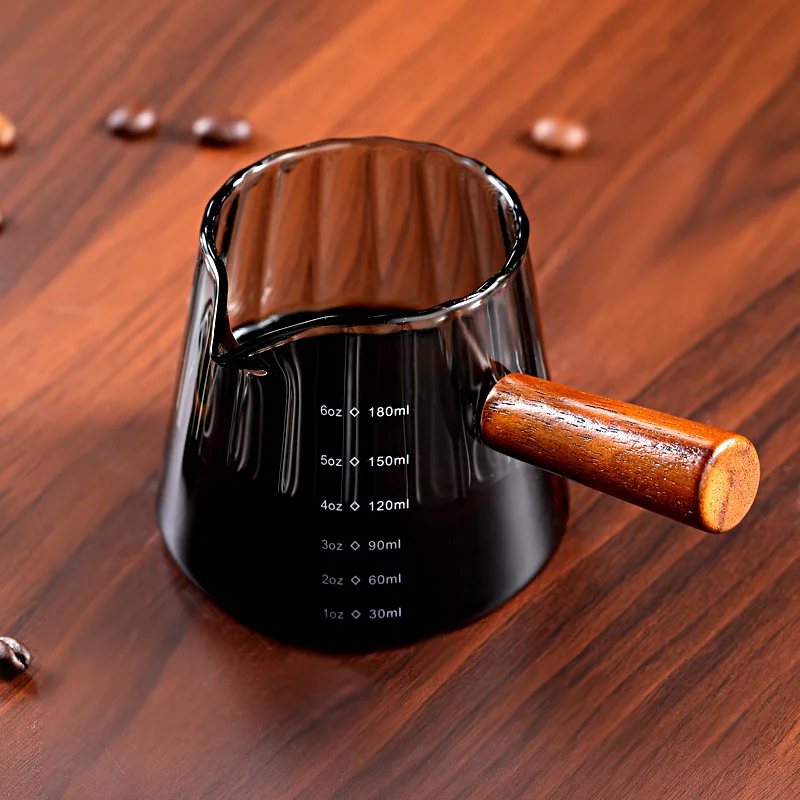 Order Directly Glass Wooden Handle Milk Cup Coffee Measuring Cup Ex...
