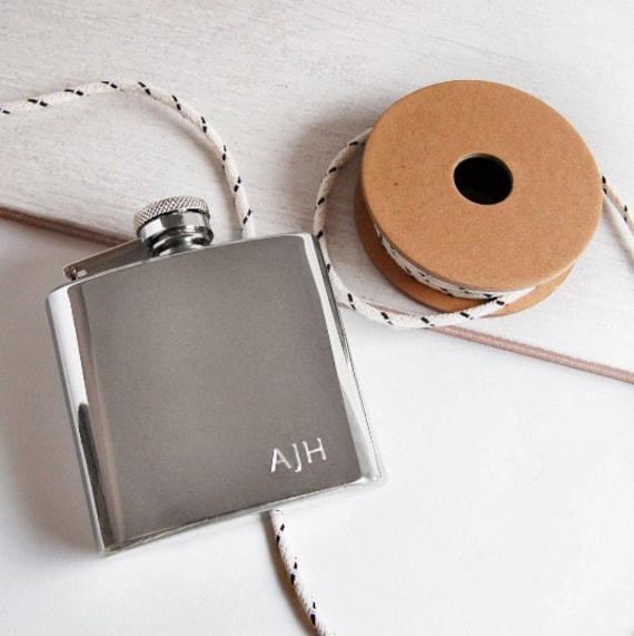 4oz Engraved Pocket Hip Flask, Personalised Hip Flask, Monogram Ste...