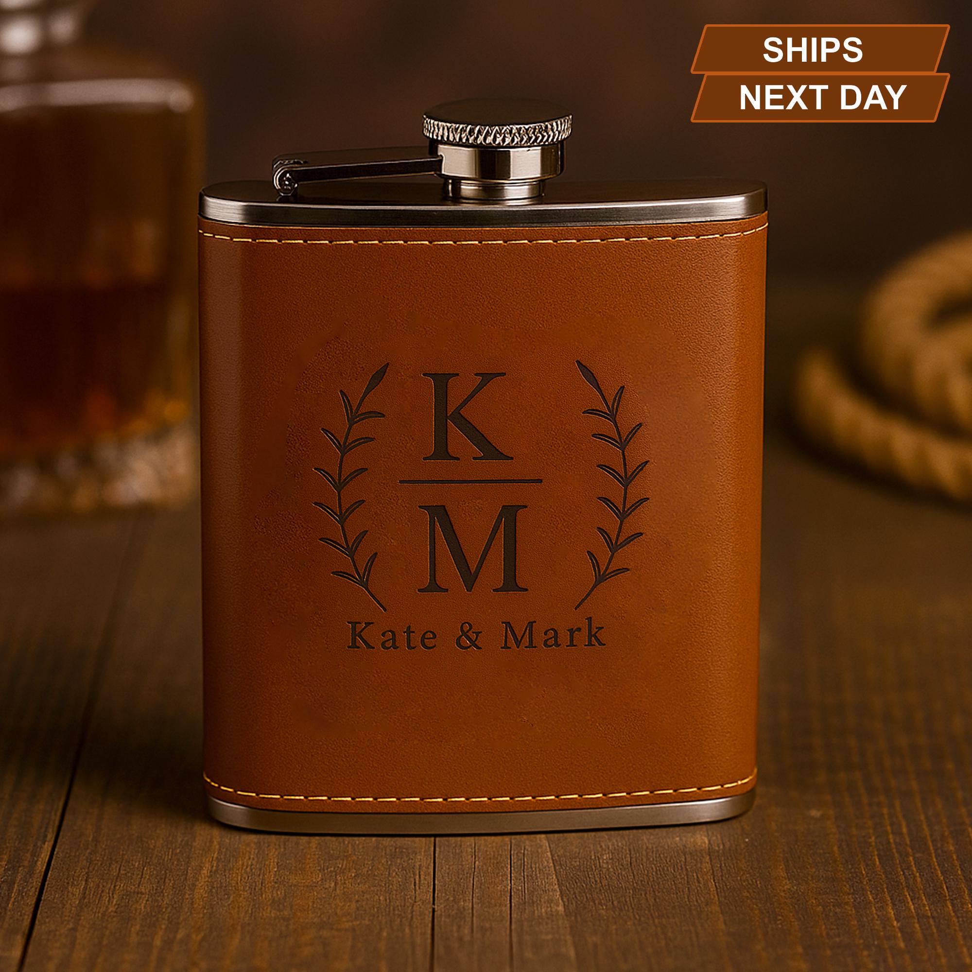Personalized Flask, Leather Flask Groomsmen Gift, Engraved Flask, H...