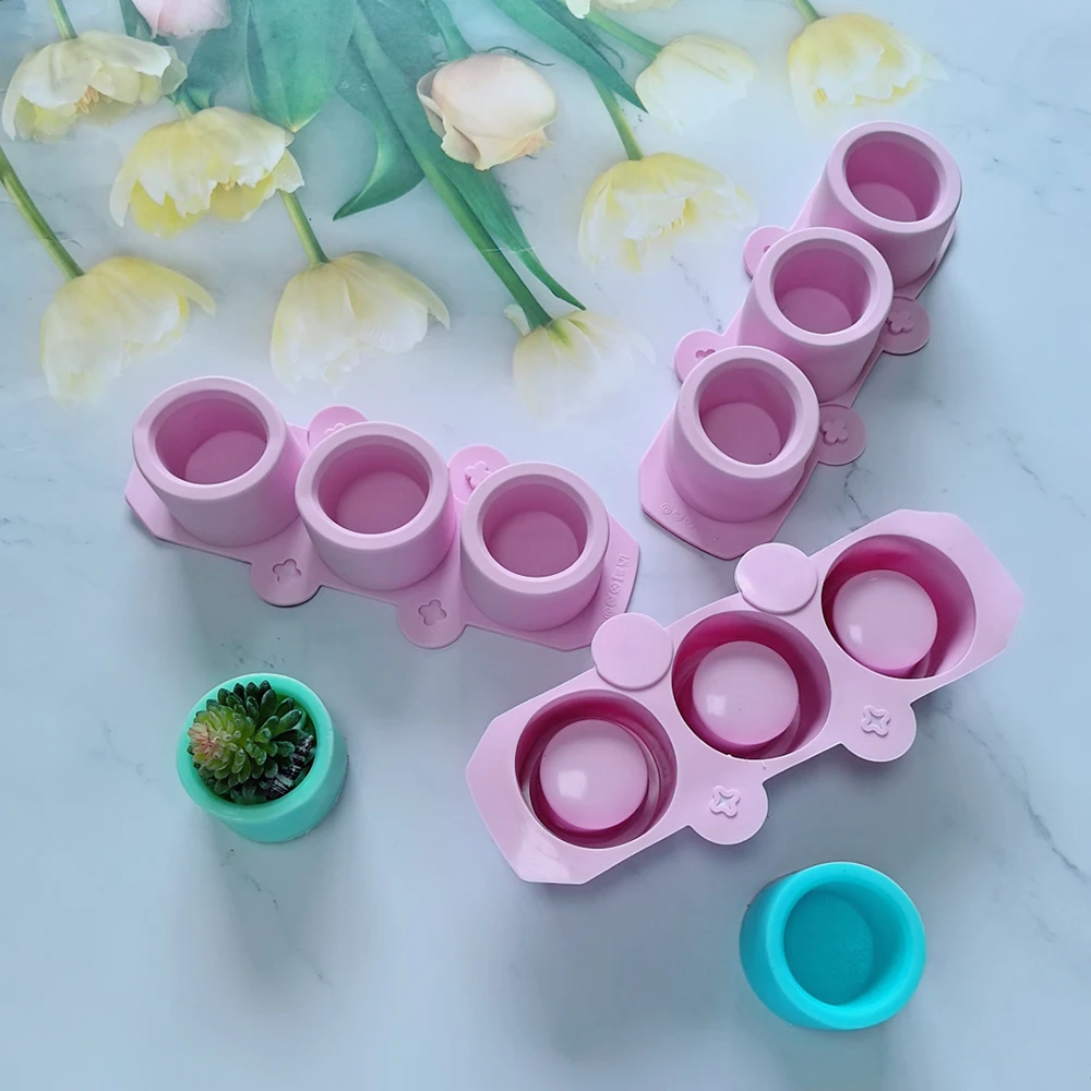 Silicone Mold for Succulent Plant Pots, DIY Craft Candlestick Mini Plant Mould, 3-Cavity Round Pot S...