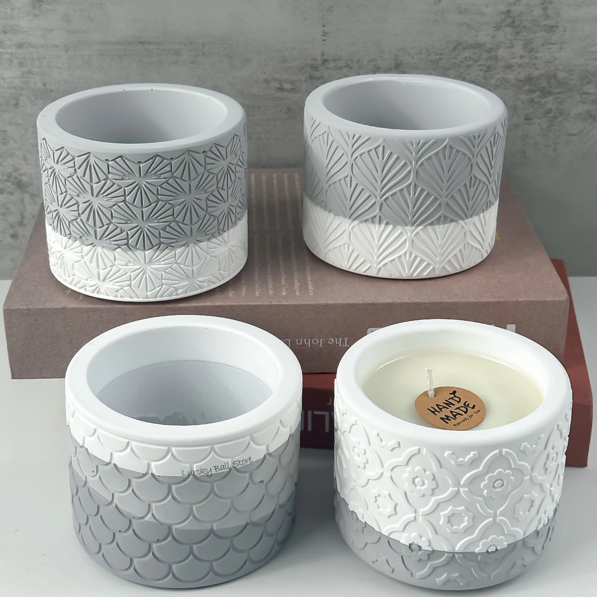 DIY Round Plaster Candle Cup Silicone Mold Flowerpot Storage Jar Cement Plaster Pottery Mould Concre...