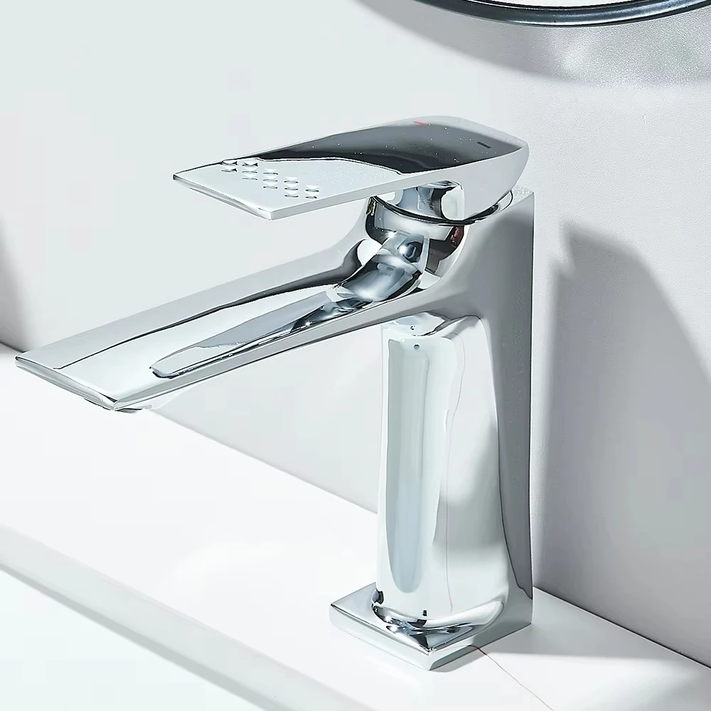 Grifo de lavabo de baño gris moderno, grifo de lavabo de enc...