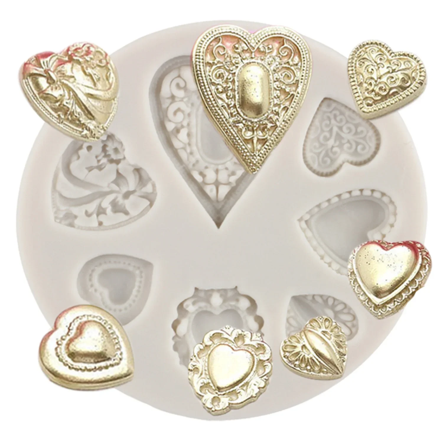 Heart Shaped Gem Silicone Mold Cupcake Topper Fondant Molds Wedding Cake Decorating Tools Chocolate ...