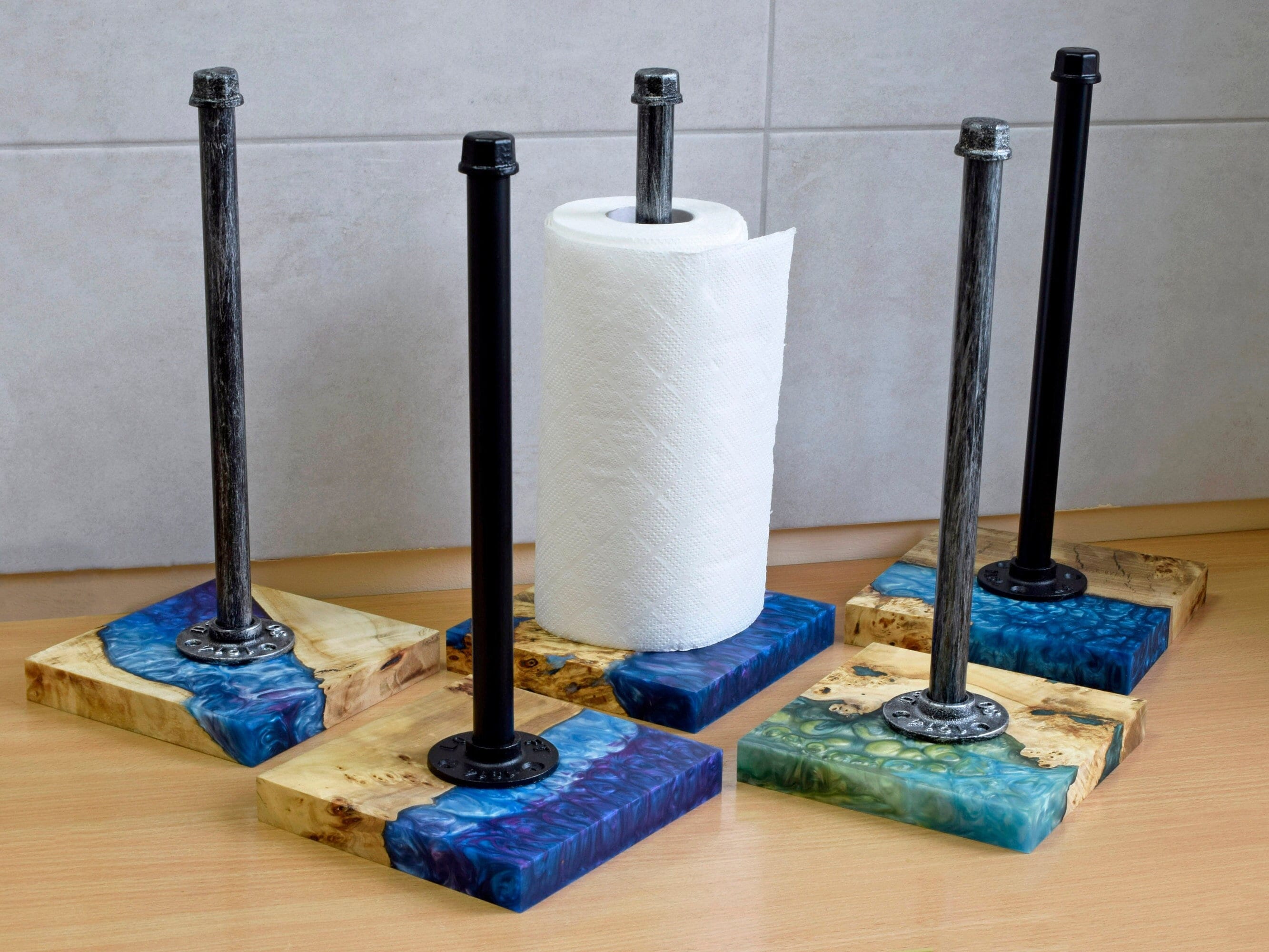 This Industrial black or retro pipe Paper Towel Holder is made from solid wood with epoxy resin. Eve...