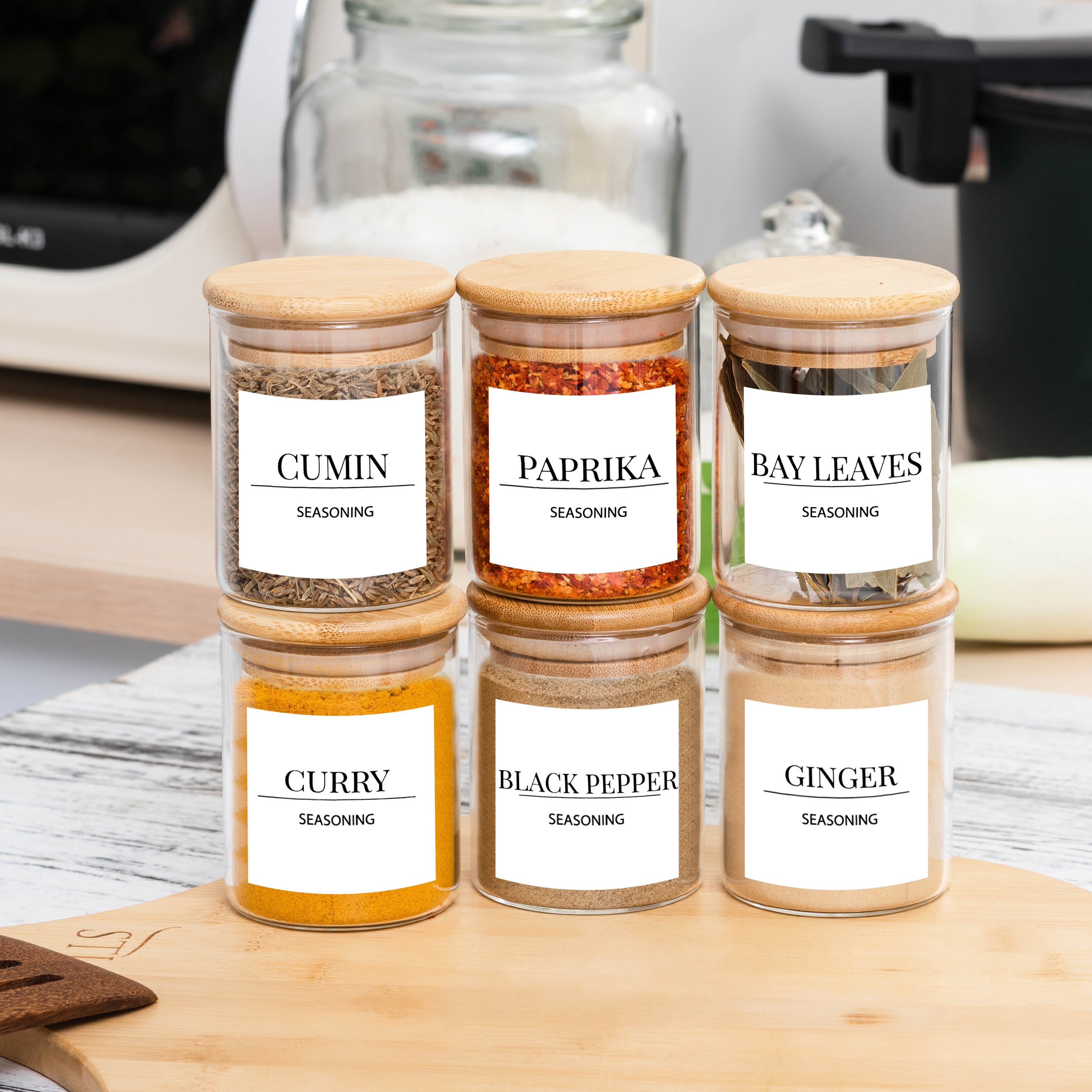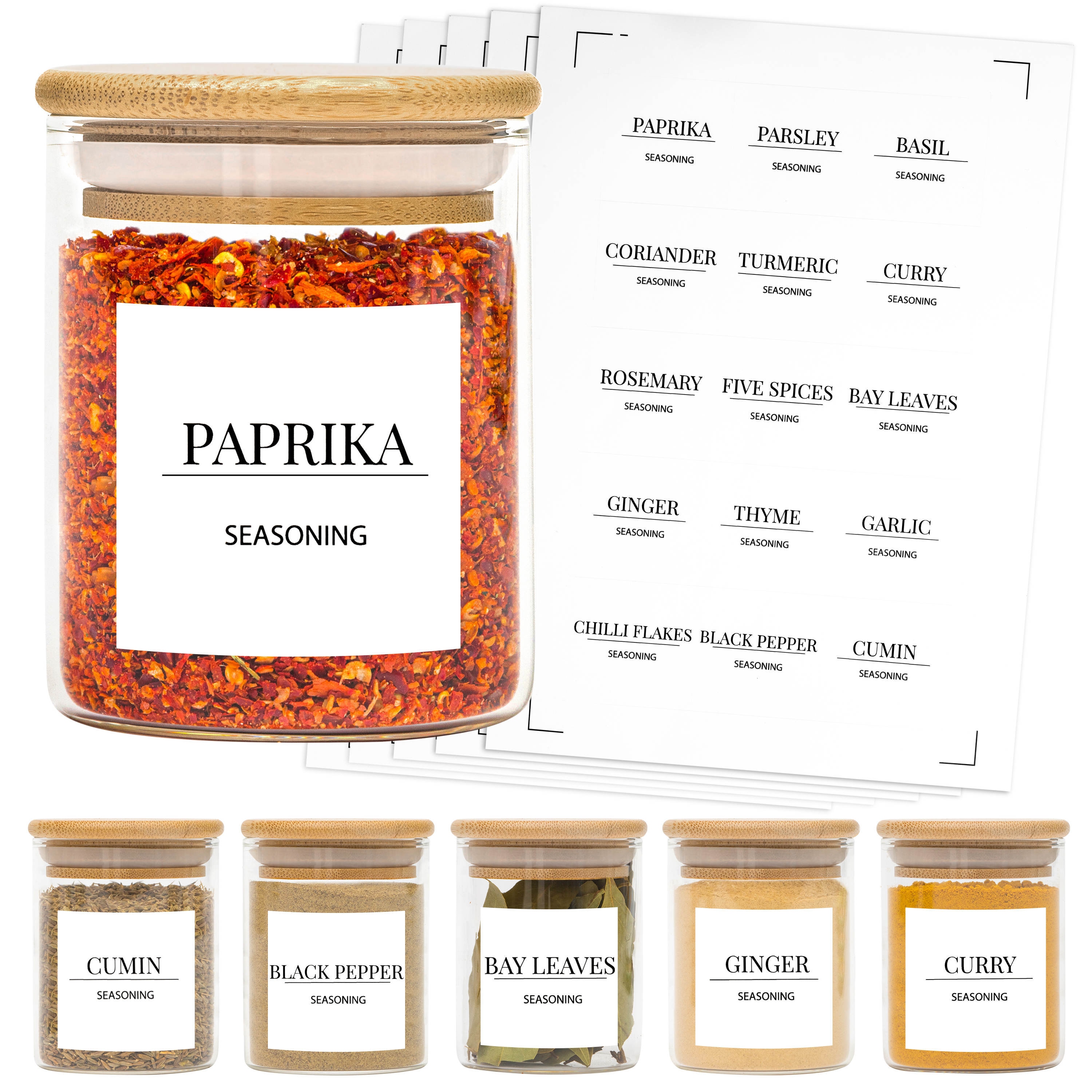 Spice Jars Set - Spice Jars with Bamboo lids Spice Jars with Label ...