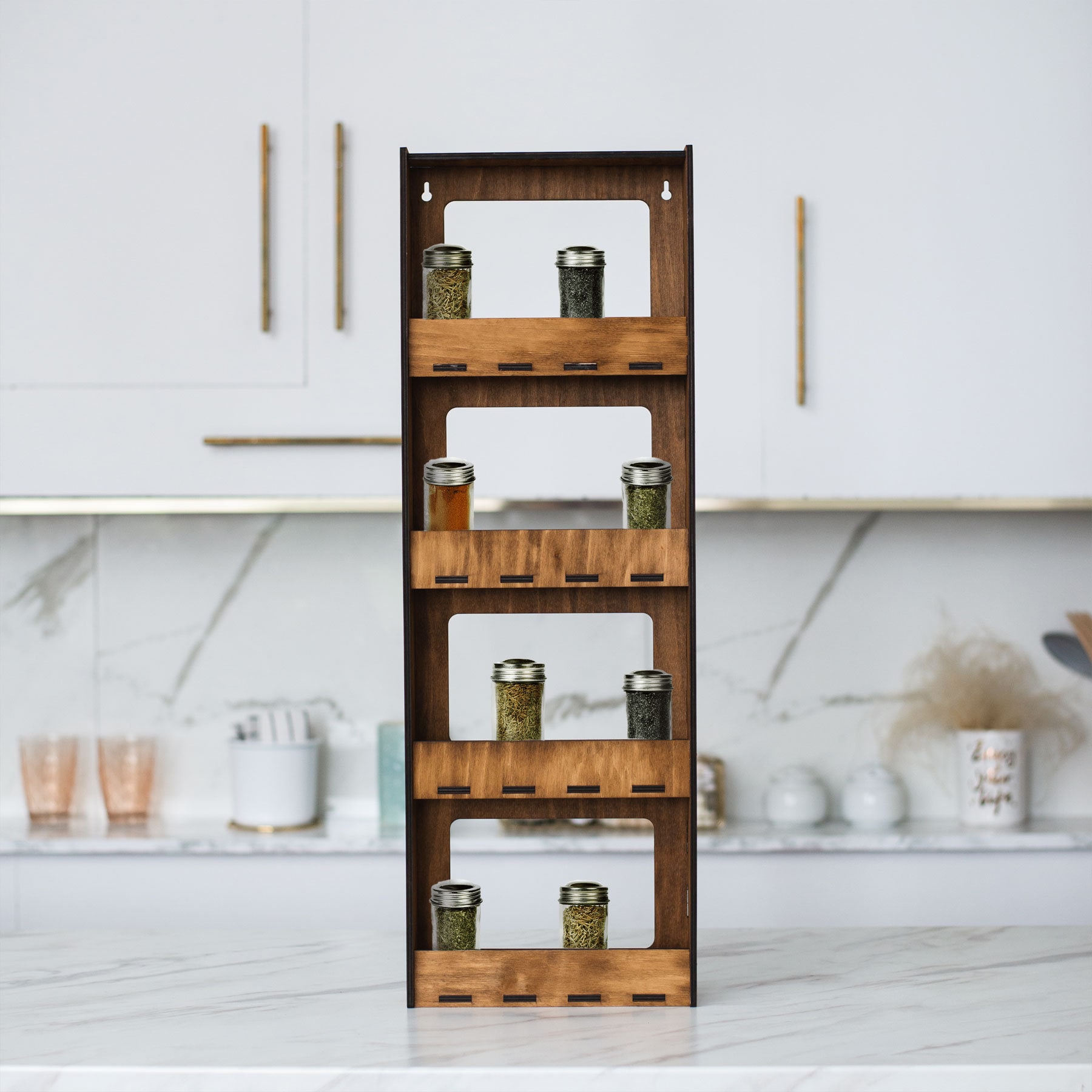 Wooden spice rack countertop, Spice jar holder, Wood spice shelf, S...
