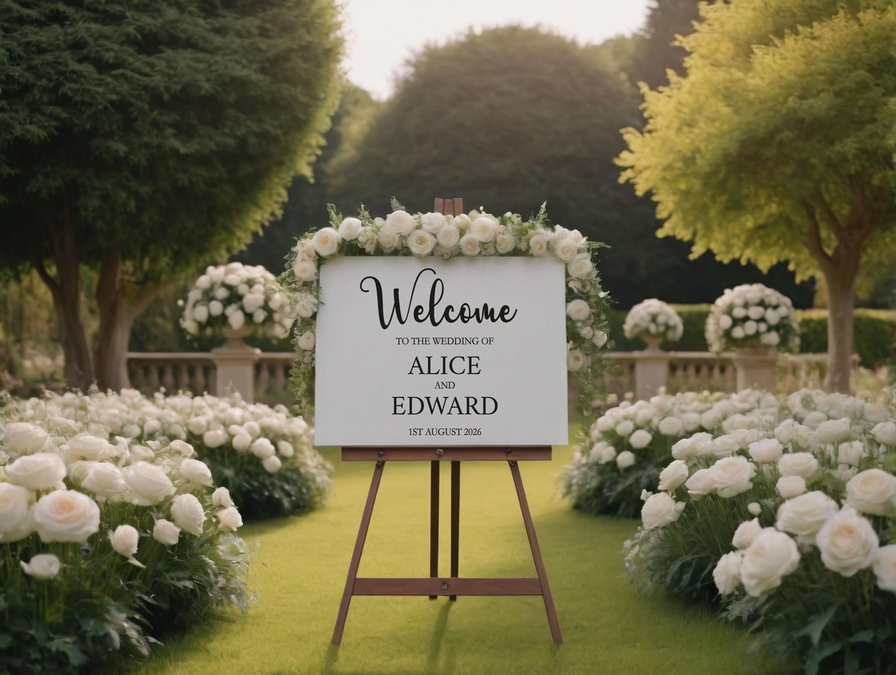 "Make your wedding day unforgettable with our customizable A1 wedding sign, designed to add a p...