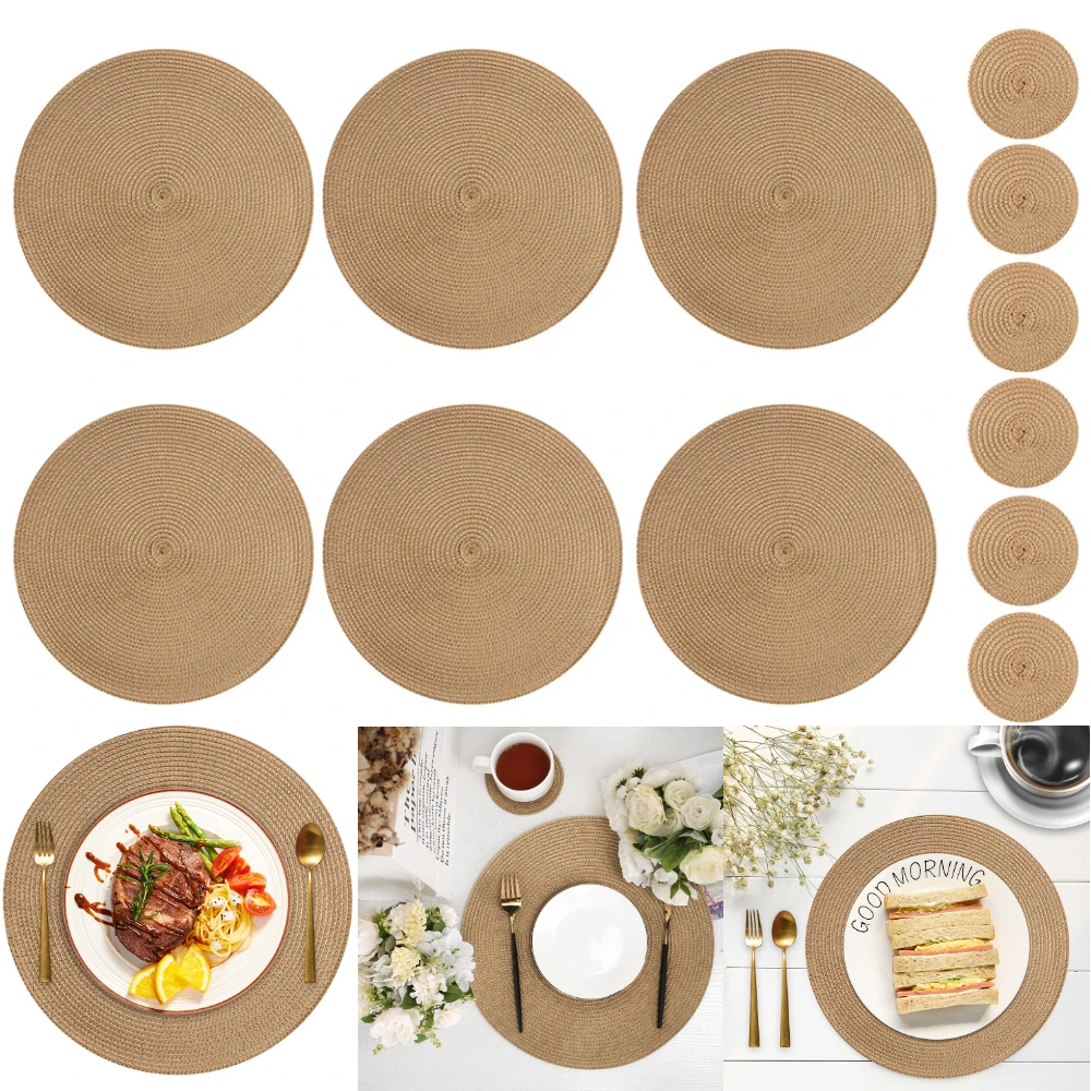Set of 12 Round Braided Table Mat Washable Placemats Non Slip Heat ...