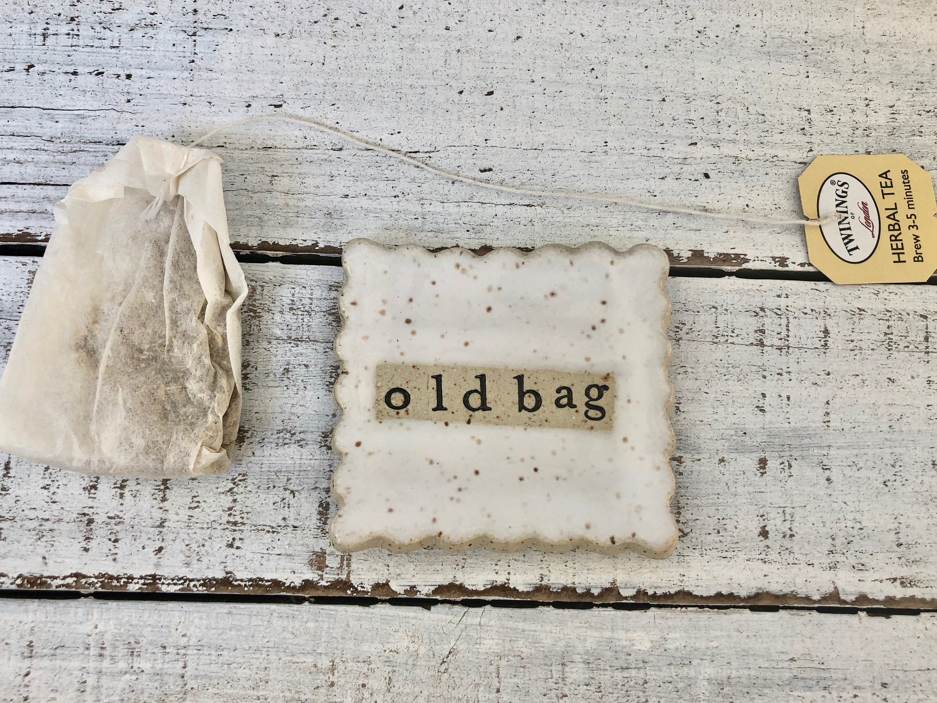 "\"Old Bag\" Really cute tea beg rest, trinket dish, jewelry catcher, coffee spoon re...