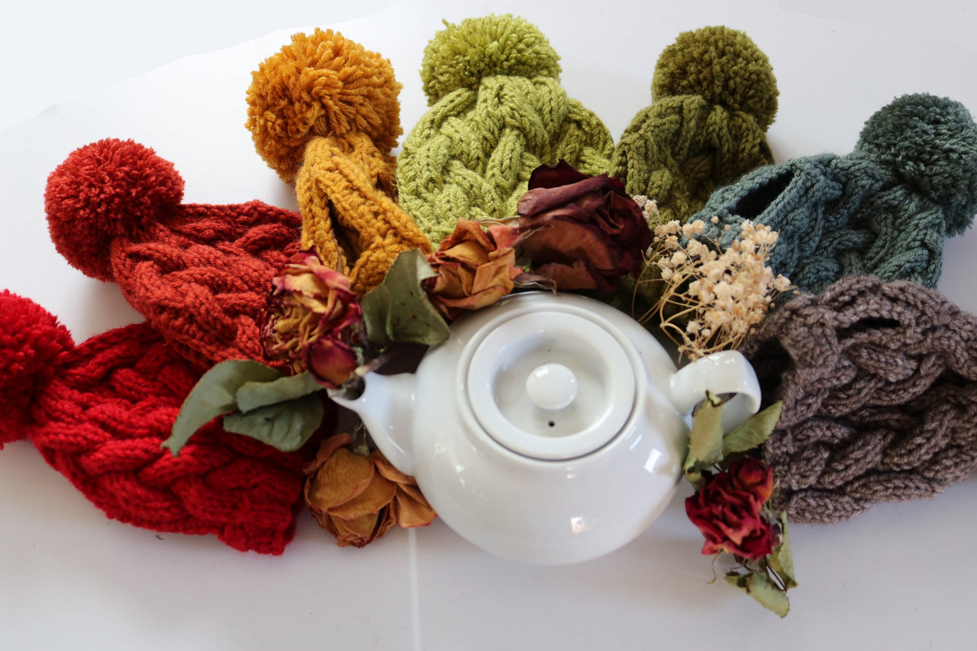 Knit tea cozy with pom pom for 2 cup teapot, teapot warmer, wool te...
