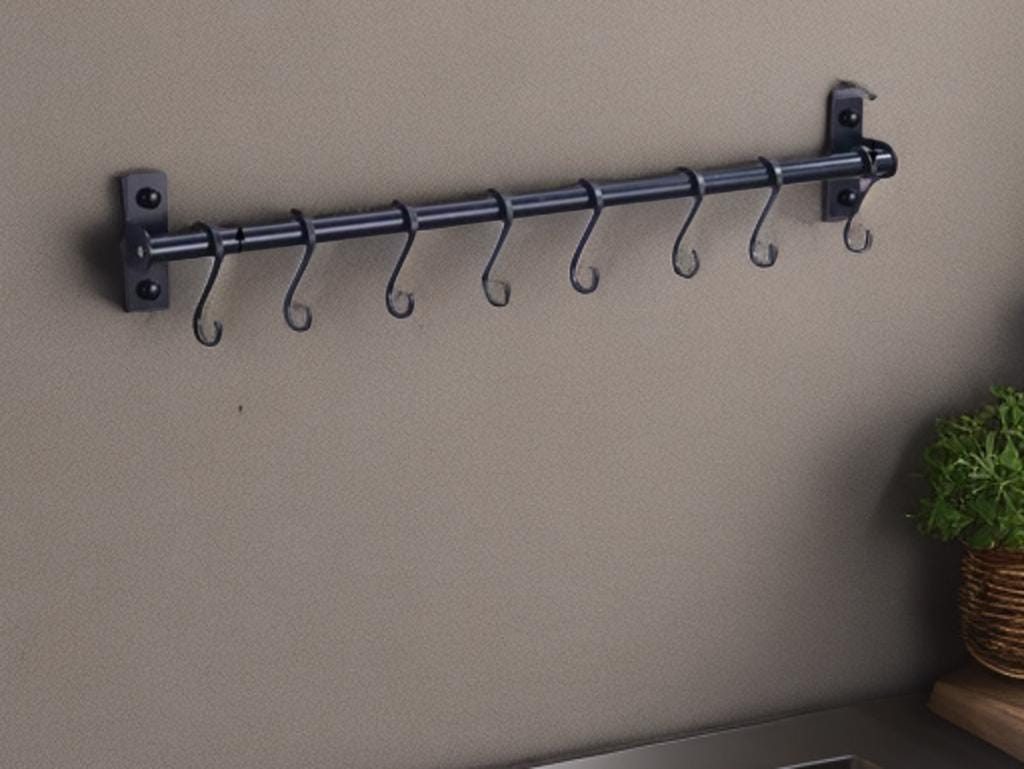 Wall Mounted Kitchen Utensil Rack - Hanging Organiser with Hooks fo...