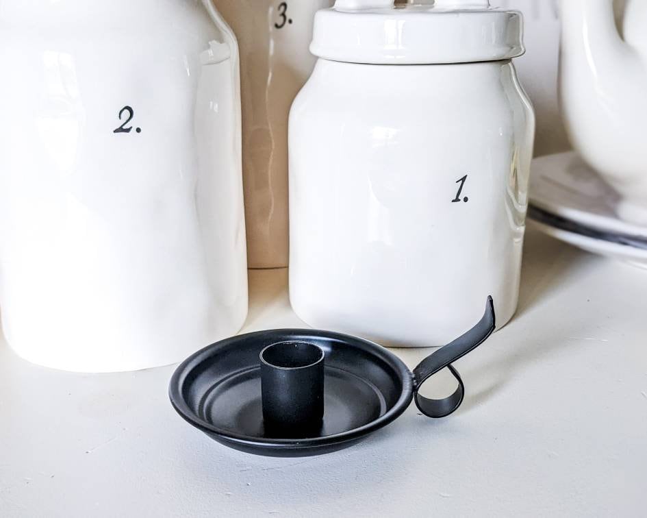 This black metal courting taper candle holder is simple and functional in design and will fit many h...