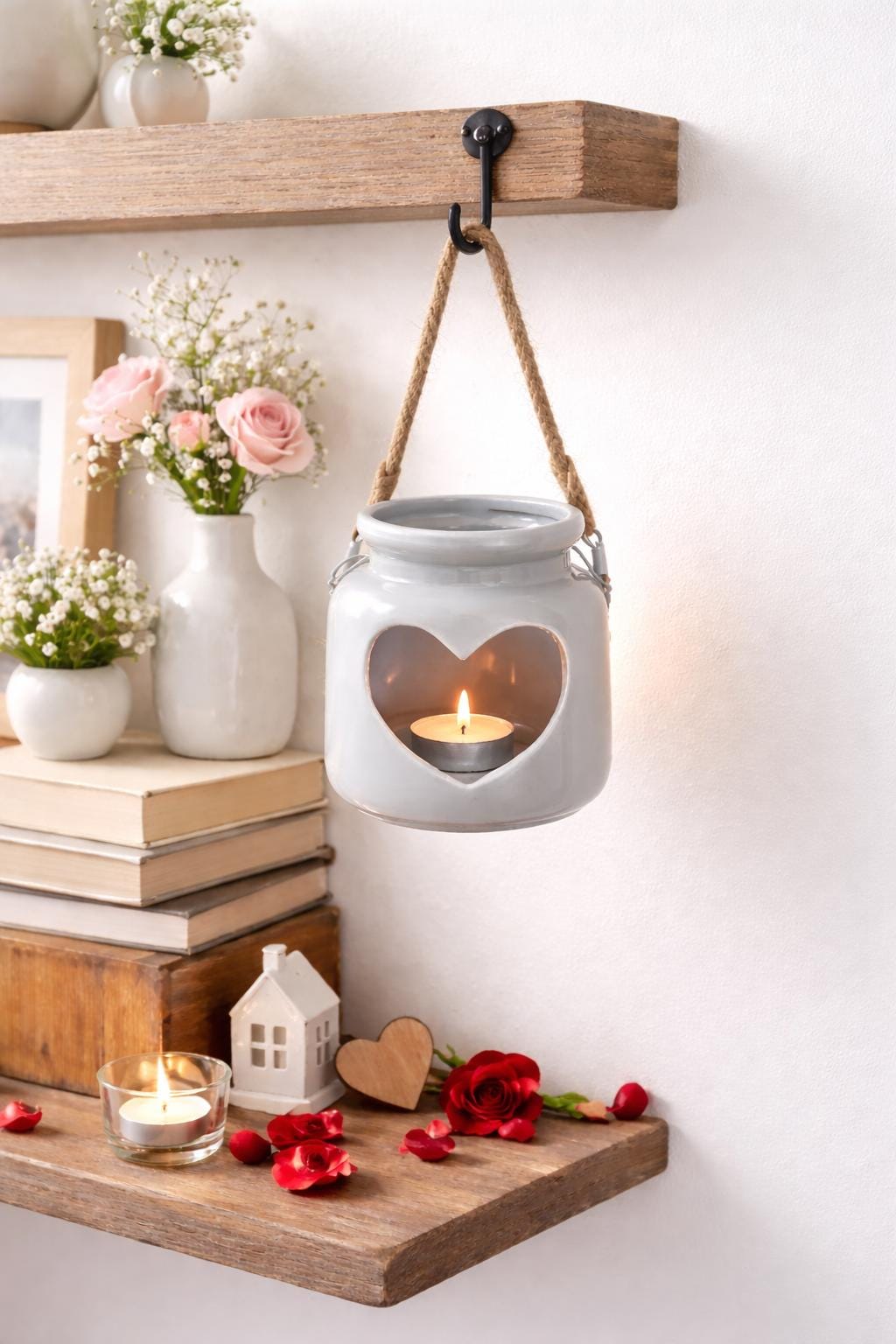 Candle heart Lantern/White/Grey Heart Candle Holder/T-Light Holder/...