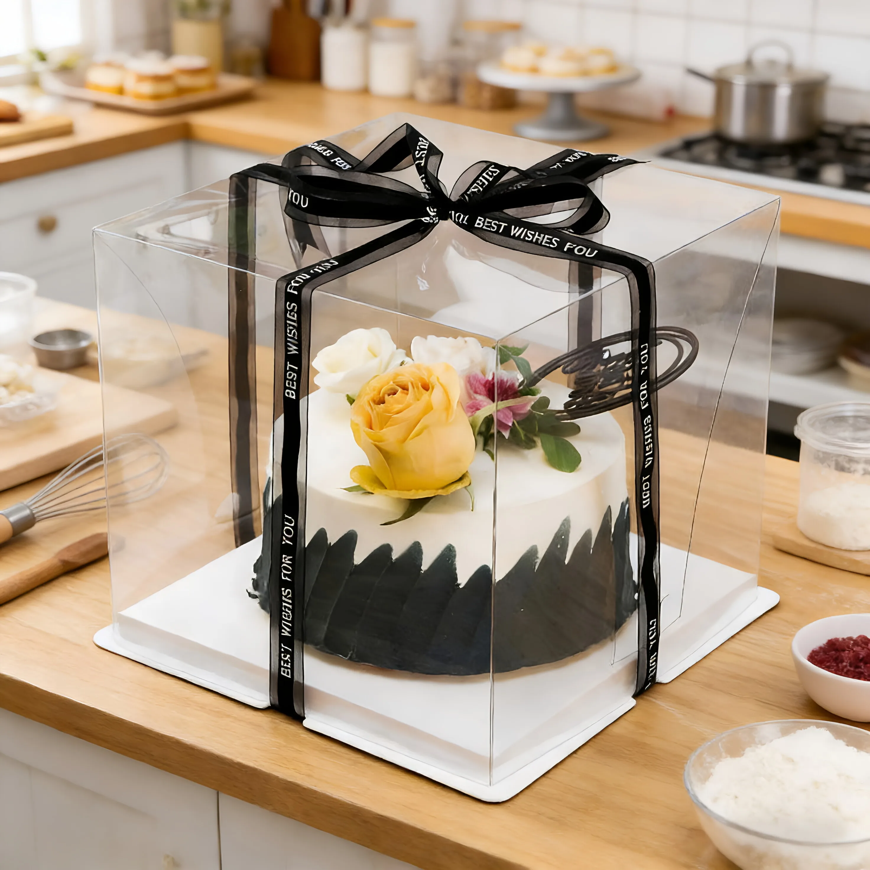 8Inch Clear Cake Box Plastic Tall Transparent Cake Carrier Disposab...