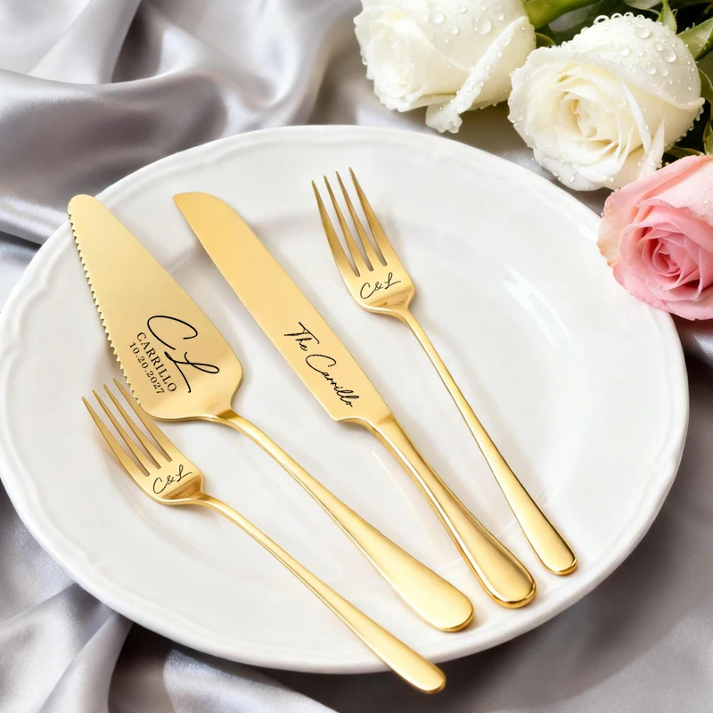 Personalized Cake Cutting 2Set, Wedding Cake Knife Set, Custom Cake Cutting Knife and Fork for Weddi...