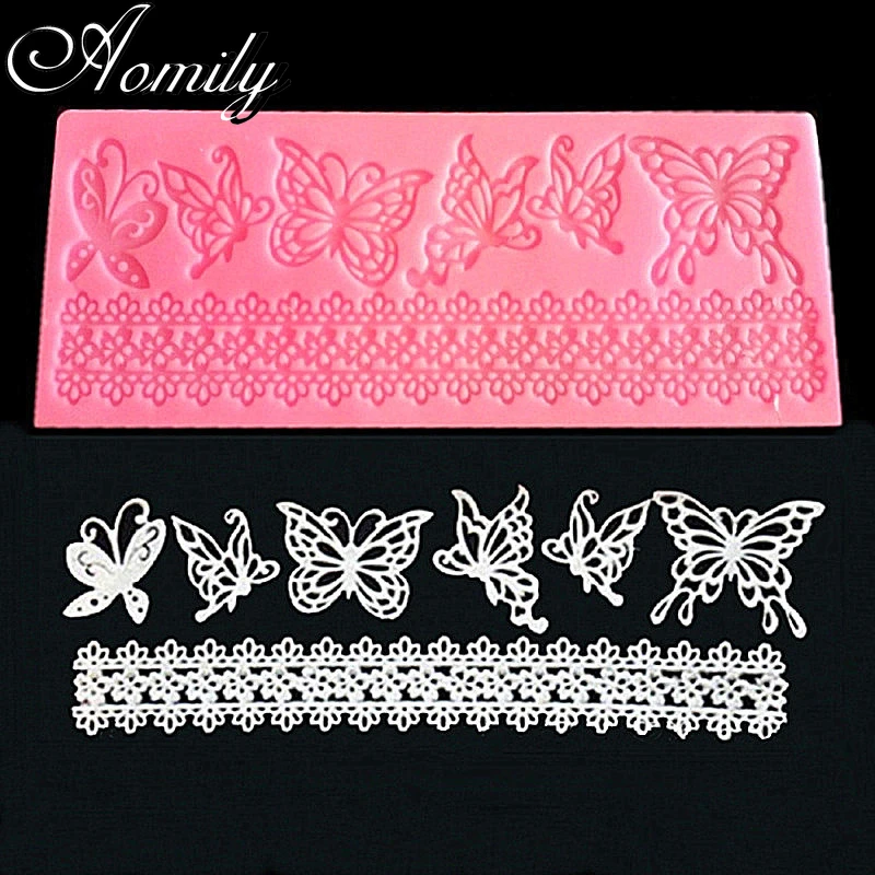 Flowers and Butterflies Mesh Stencil For Wedding Cake Border Stencils Fondant Lace Mould Cake Decora...