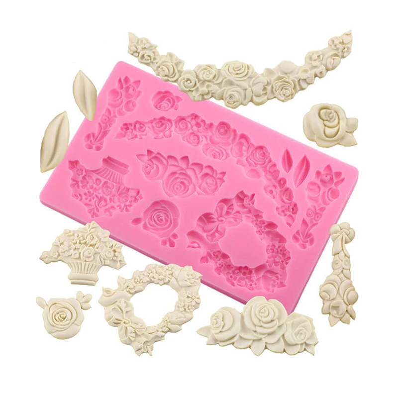 Rose Flower Cake Border Silicone Mold DIY Relief Wedding Cupcake Fo...