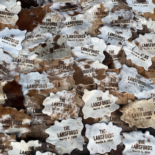 Cowhide Wedding Favors For Guests Real Cowhide Coasters Brown and White Cowhide Coasters Cowhide Wed...