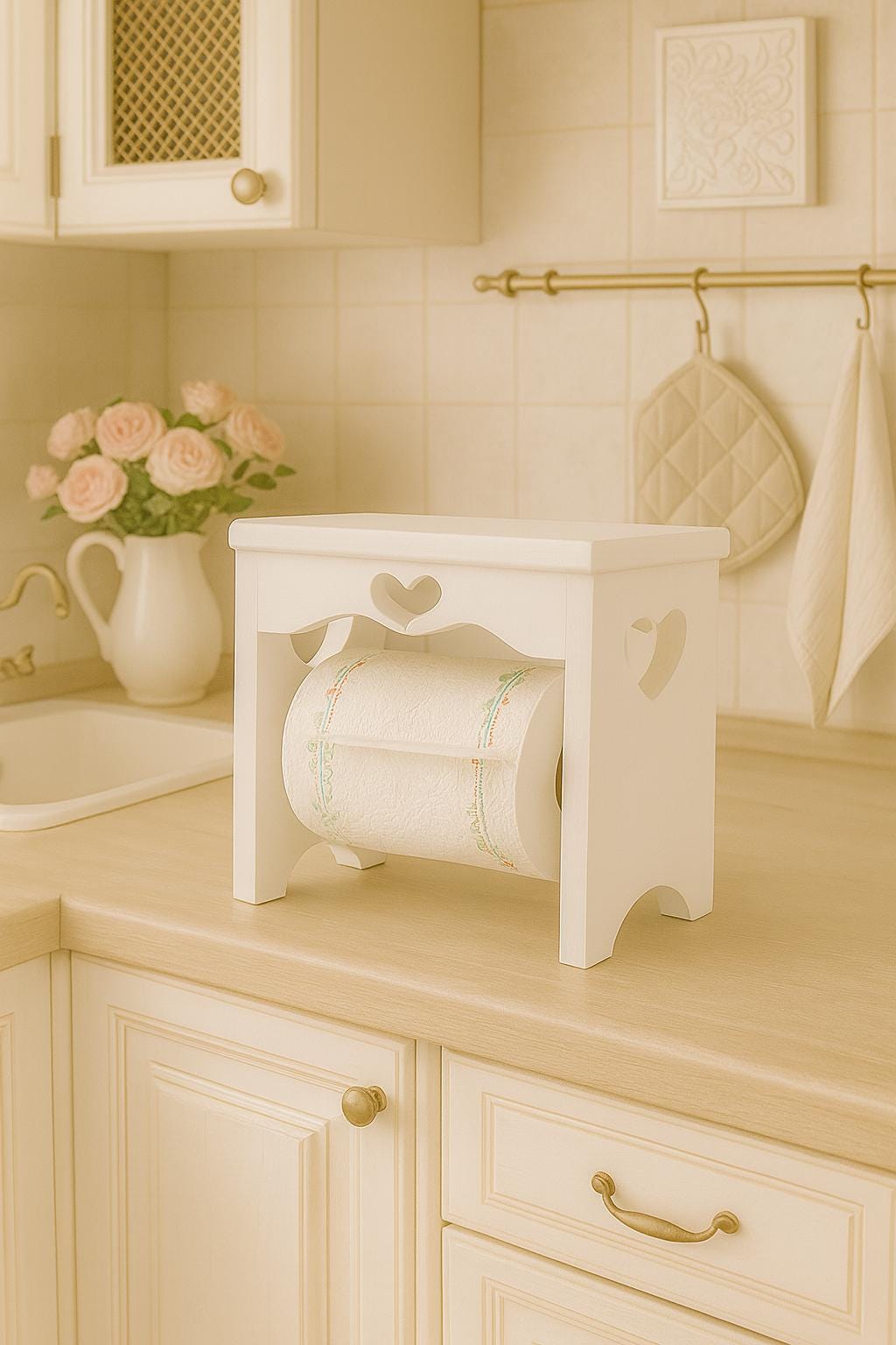 Kitchen Roll Holder with Shelf - Handcrafted Shabby Chic Design This elegant wooden kitchen roll hol...