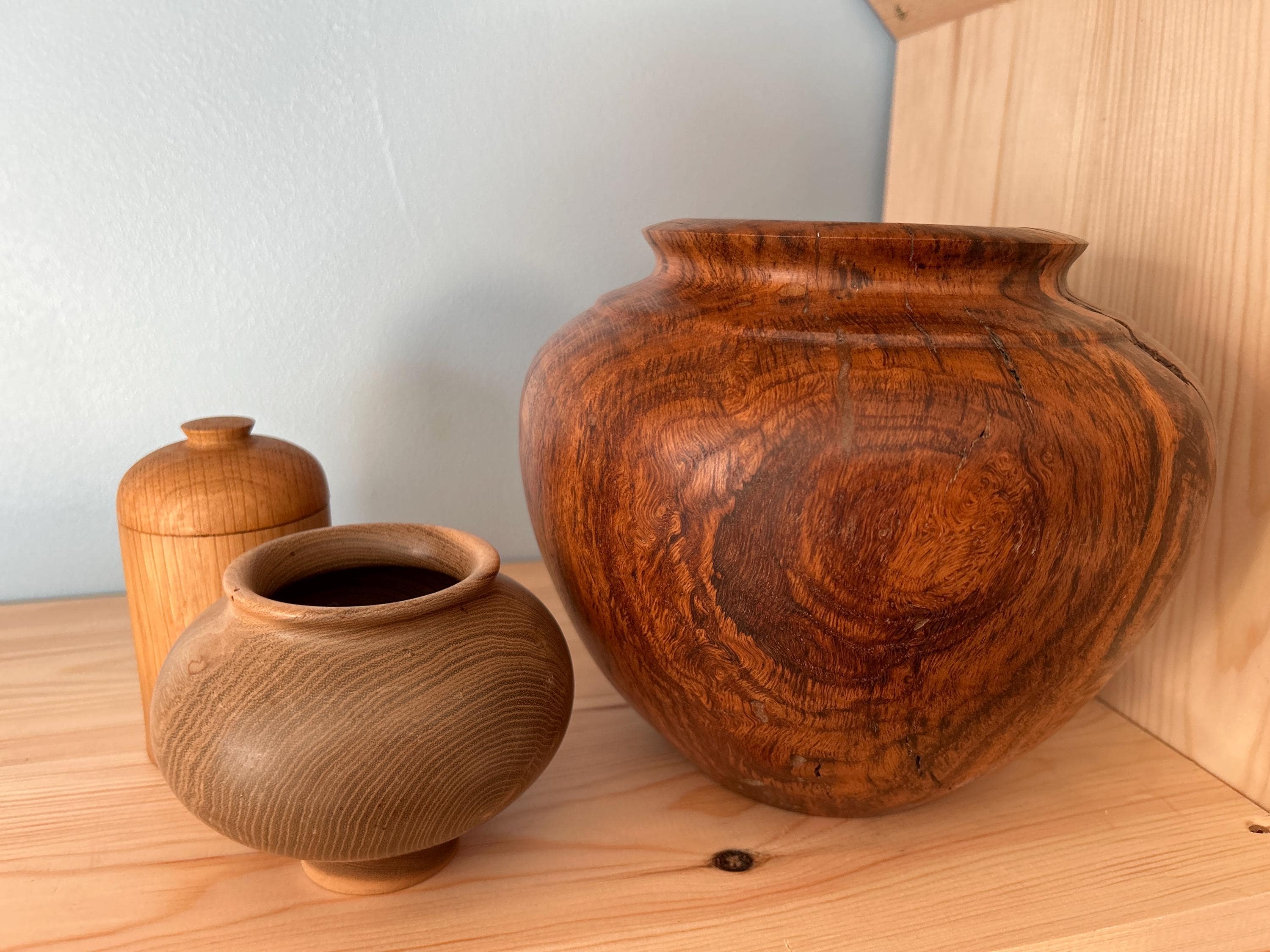 Hand Turned Wooden Pots: Mulberry Wood Pot & Lidded Salt Holder...