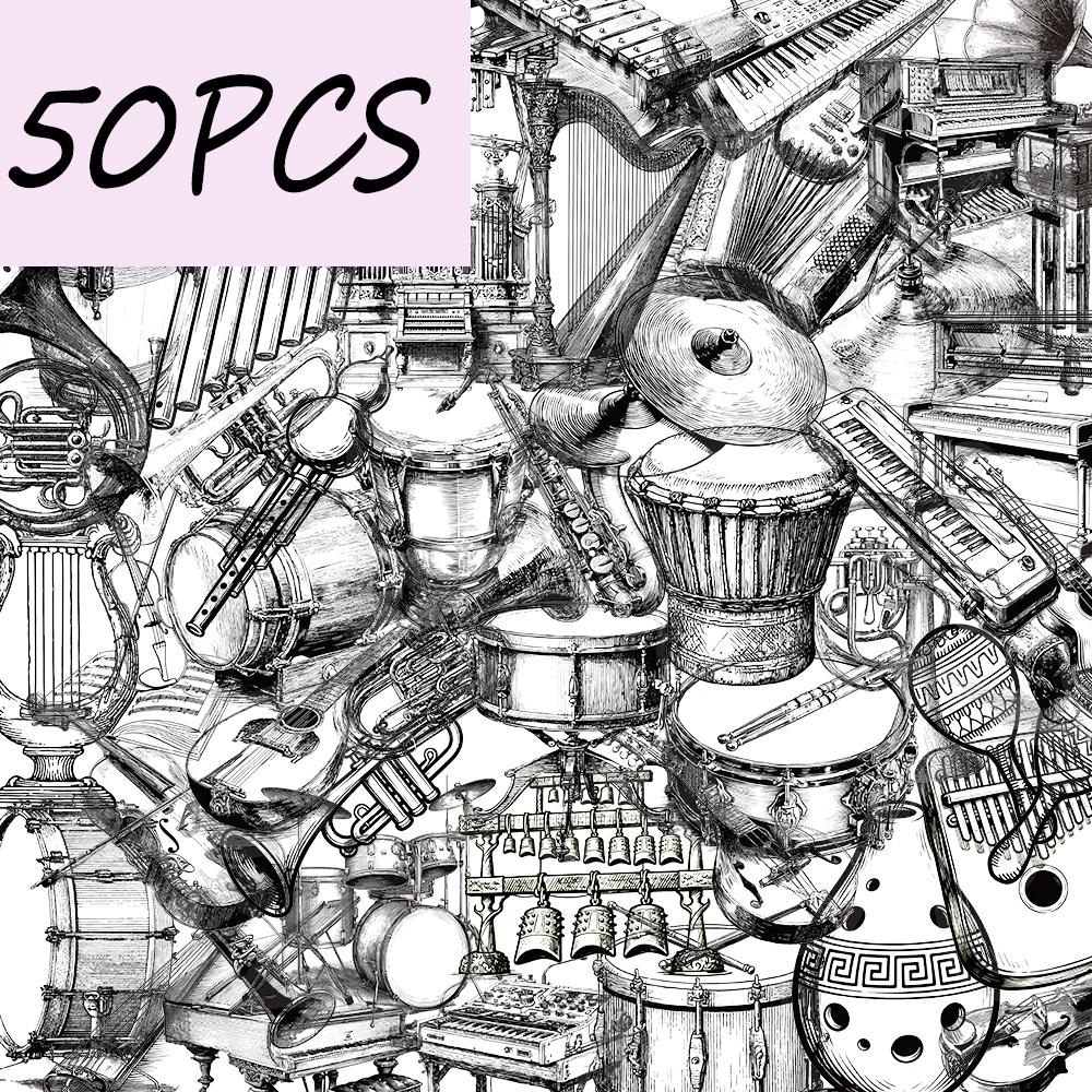 50PCS black and white instrument stickers, suitable for decorating helmets, guitars, suitcases, wate...