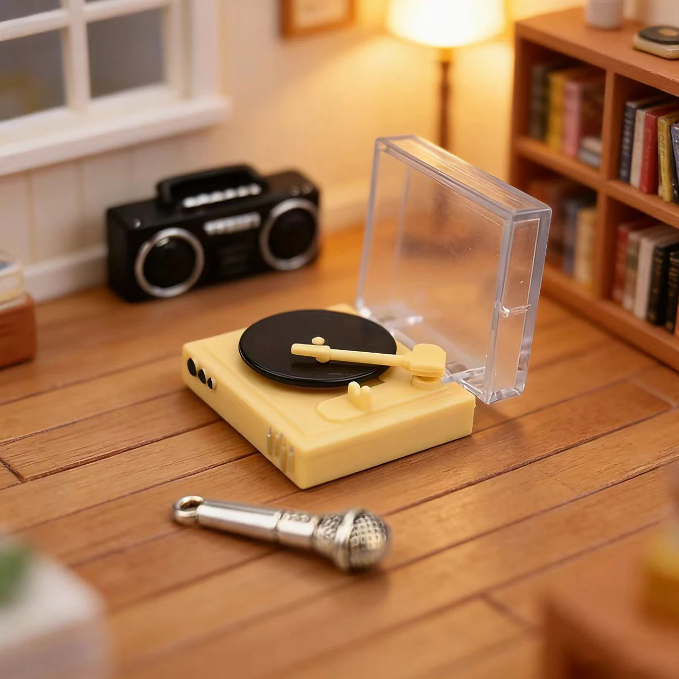 3-piece dollhouse record player set that can be opened, suitable for decorating living rooms, singin...